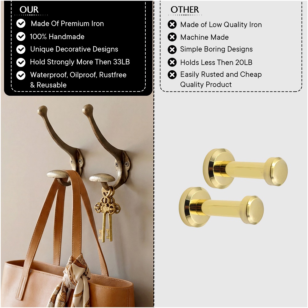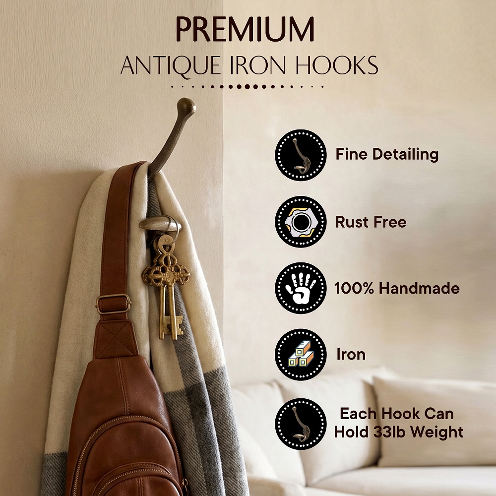 Antique Decorative Iron Hooks. When Put on Wall or Cabinet It is An Art in Itself. Its A Mix of French and English Design. Suitable for Your Kitchen, Cupboard, Rooms, Cabinets, Almirahs, Bathrooms, Doors, Etc.