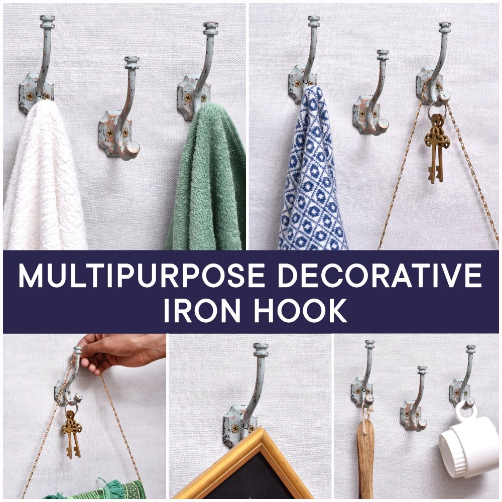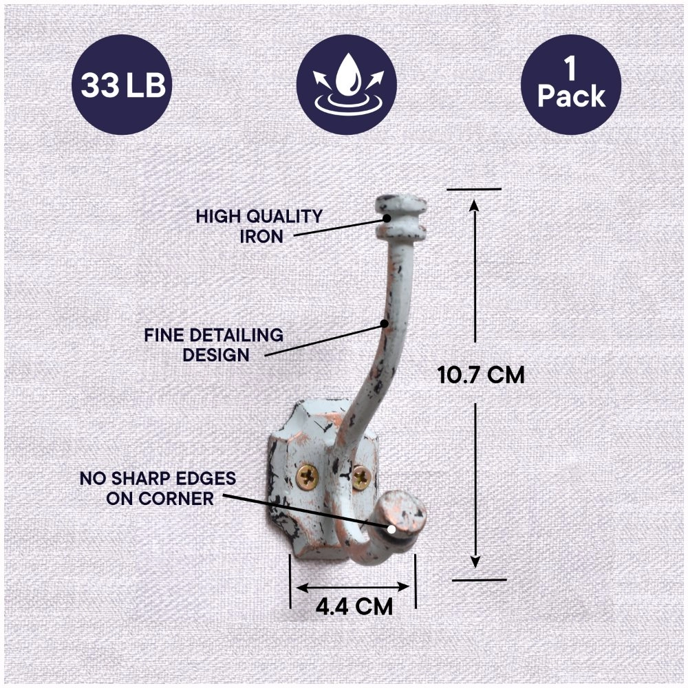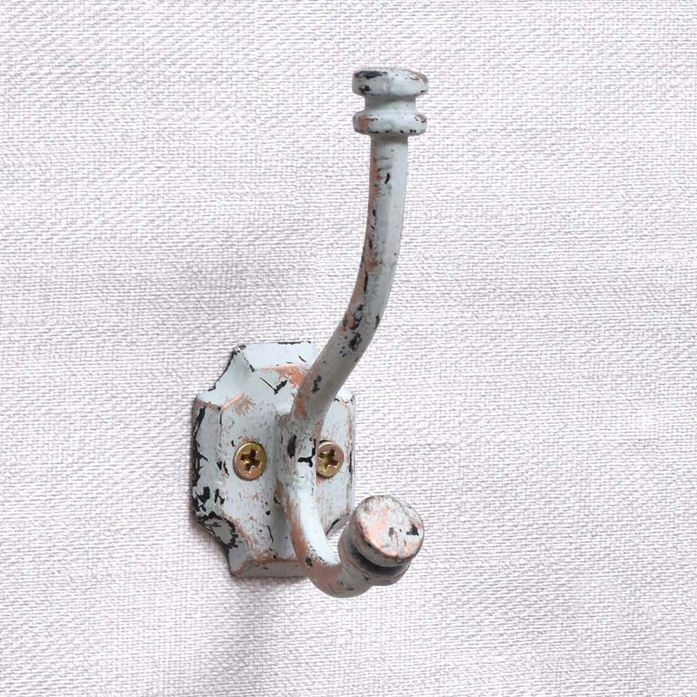 The aged iron finish complements vintage, industrial, or farmhouse interiors, acting as both a hook and decorative accent.
