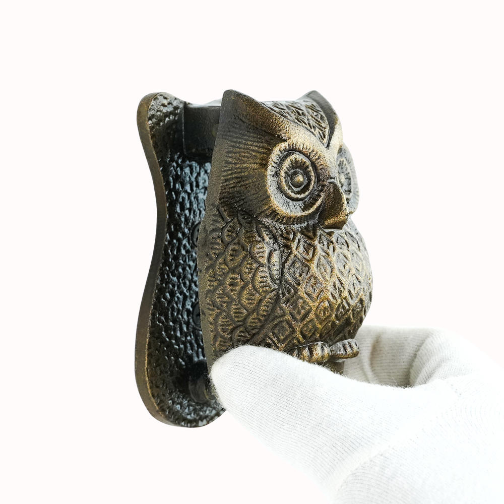 Bring character and charm to your doorway with this beautifully sculpted owl metal door knocker. Designed with intricate feather detailing and expressive eyes, the owl symbolizes wisdom and protection, making it a striking and meaningful entrance accent. Finished in a rustic antique tone, it offers a timeless, old-world appeal that complements traditional, rustic, and eclectic home styles. Crafted from durable metal for long-lasting use, this door knocker is both a functional hardware piece and a captivating decorative element that instantly enhances your doors personality.