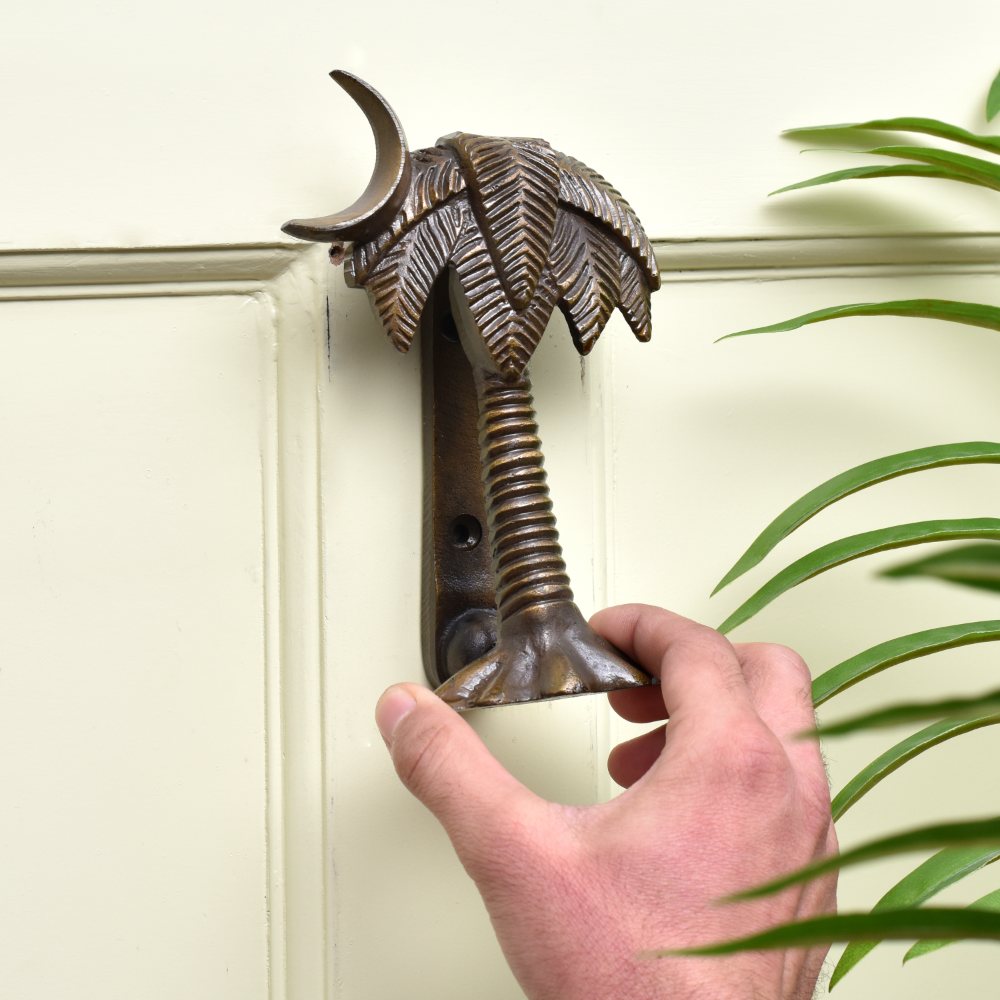 The palm tree symbolizes relaxation, warmth, and hospitality — all of which are captured beautifully in the design of this door knocker. With its intricate detailing, it makes a subtle yet bold statement, offering a welcoming vibe to anyone approaching your home.