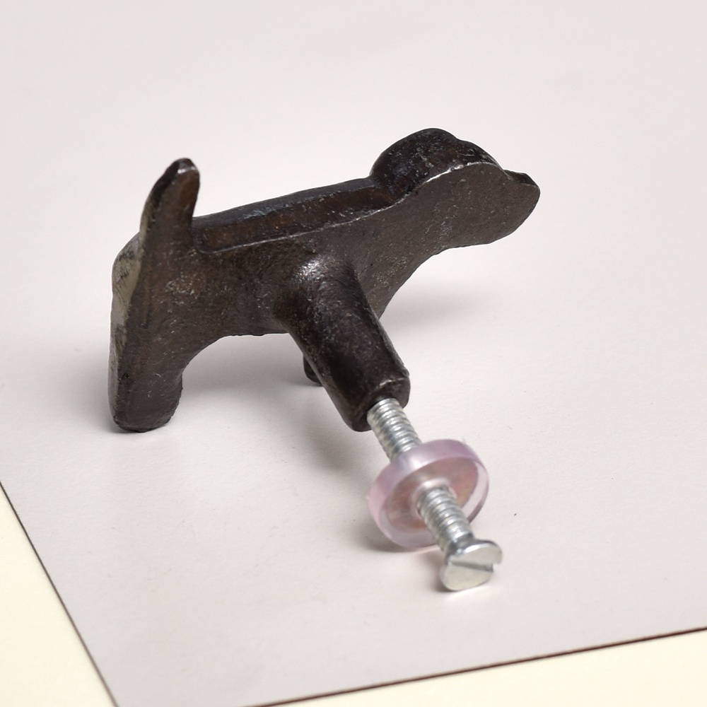 Bring a little personality and charm to your home with the Antique Puppy Iron Cabinet Knob. Its cute, antique design adds character to any piece of furniture, while its sturdy iron build ensures lasting functionality. Perfect for a variety of spaces, this knob is a wonderful way to add a lighthearted yet timeless touch to your décor.