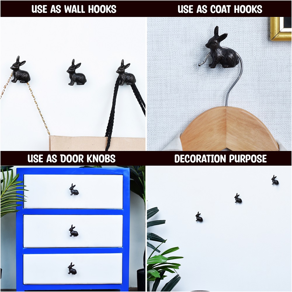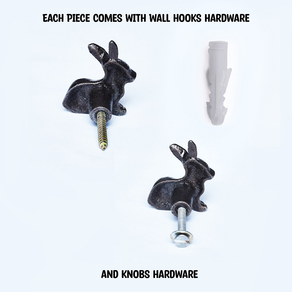 Antique Rabbit Metal Wall Hooks and Drawer Knobs 3 Pieces Especially for those who enjoy nature. The Hook may hold hanging objects in your home such as kitchen items, bathroom items, bedroom decorative items, guest room decorative items, and so on. A complete and compact present for individuals who appreciate art as well as their family and friends.