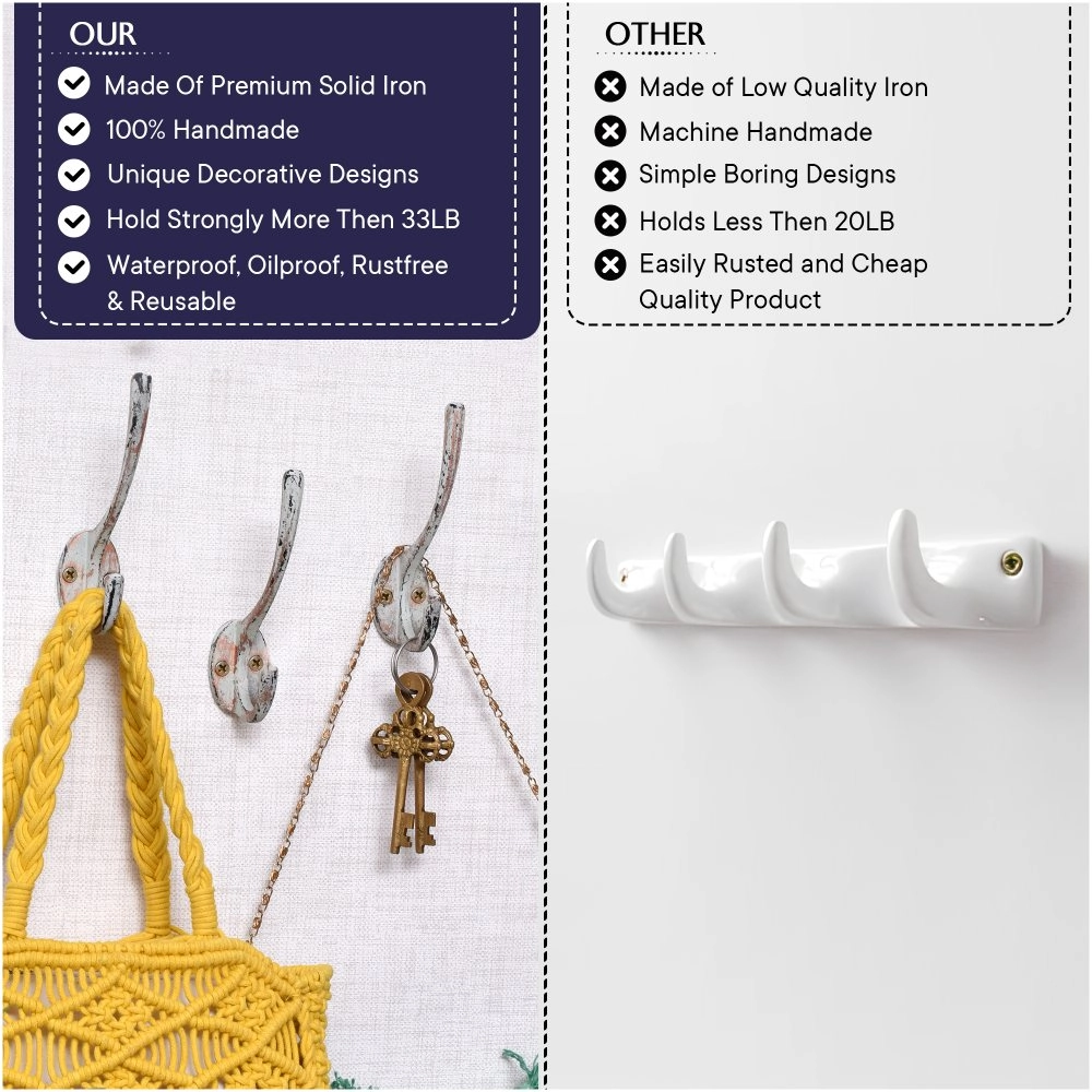 1. Strong & Reliable Functionality 2. Vintage-Inspired Aesthetic 3. Long-Lasting Durability 4. Naturally Antimicrobial Install several hooks side-by-side on reclaimed wood to create a custom entryway organizer with a vintage twist.
