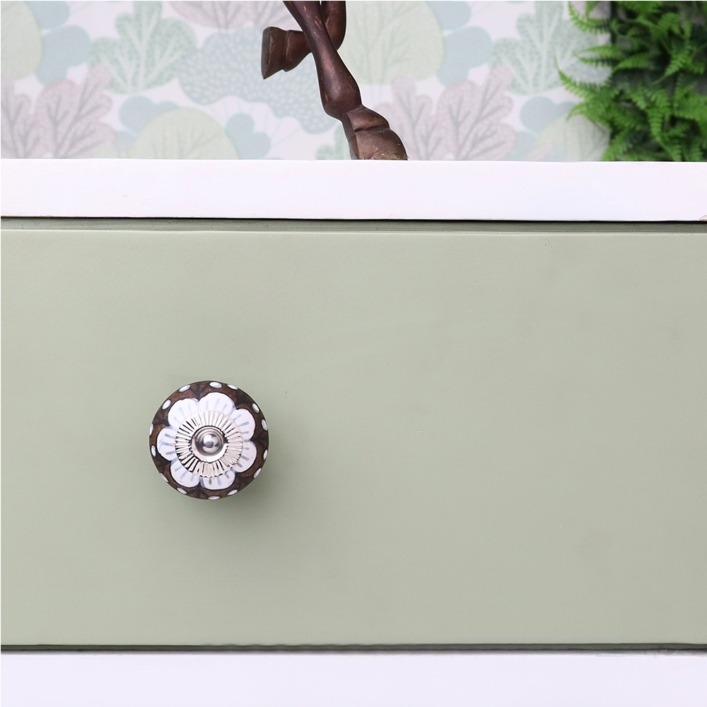 Crafted from high-quality ceramic, the Antique White Floral Round Ceramic Cabinet Knob is built to stand the test of time. The sturdy ceramic material ensures that the knob remains intact and beautiful even with regular use. Its easy-to-clean surface allows for simple maintenance, keeping it looking fresh and elegant for years to come.