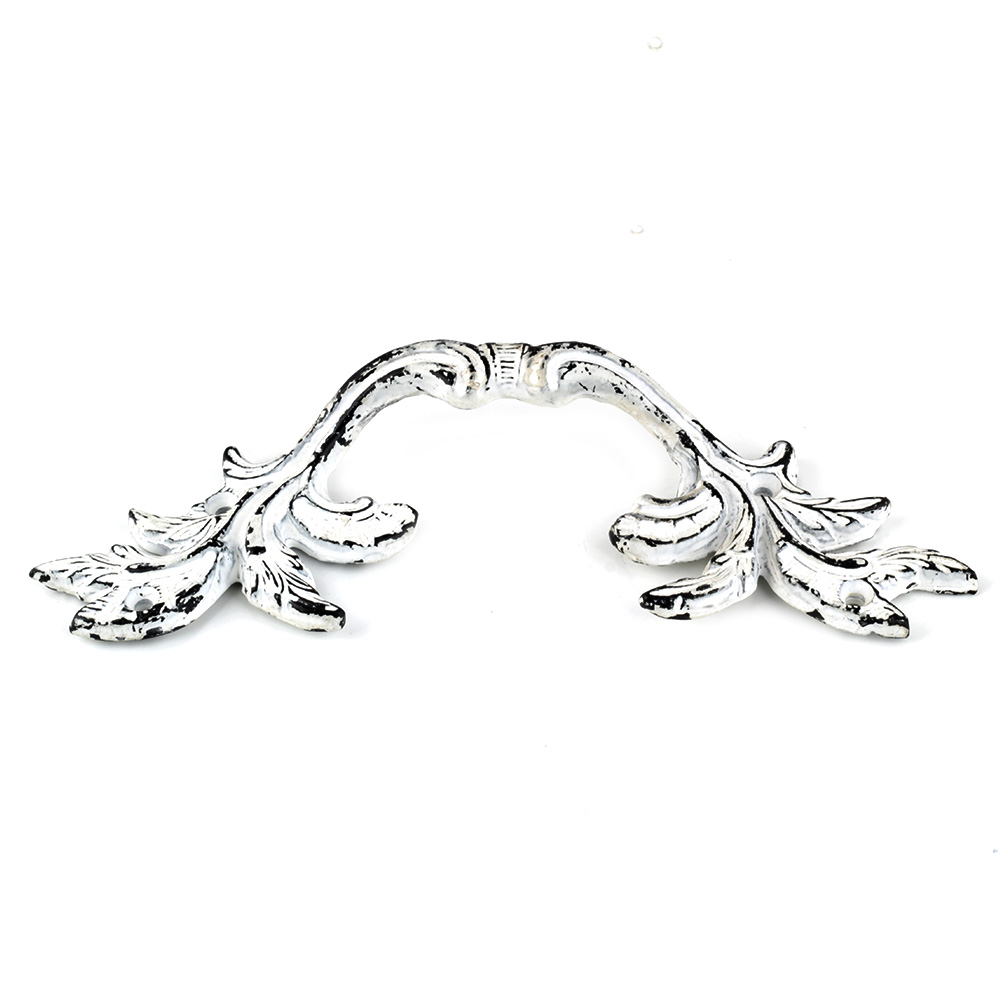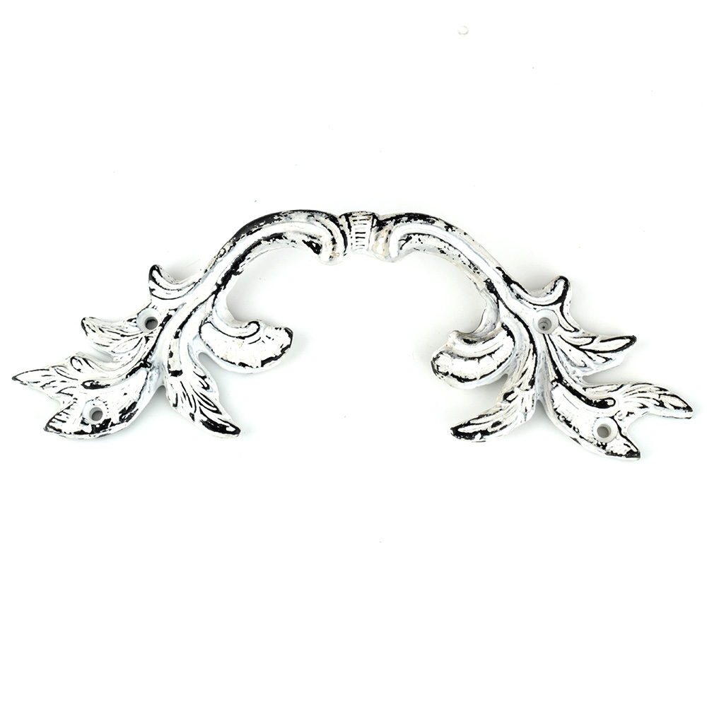 This large iron handle showcases a beautiful leaf motif, combining visual charm with practicality. Its antique white finish imparts a vintage allure that suits a range of interior styles, from traditional to shabby chic.