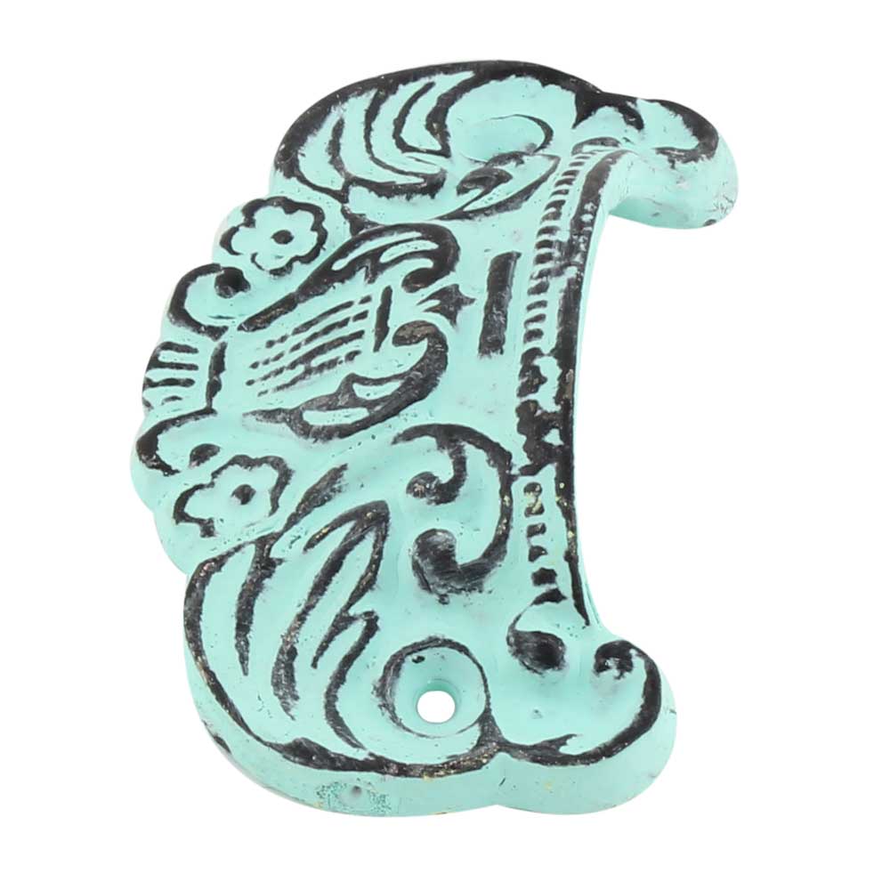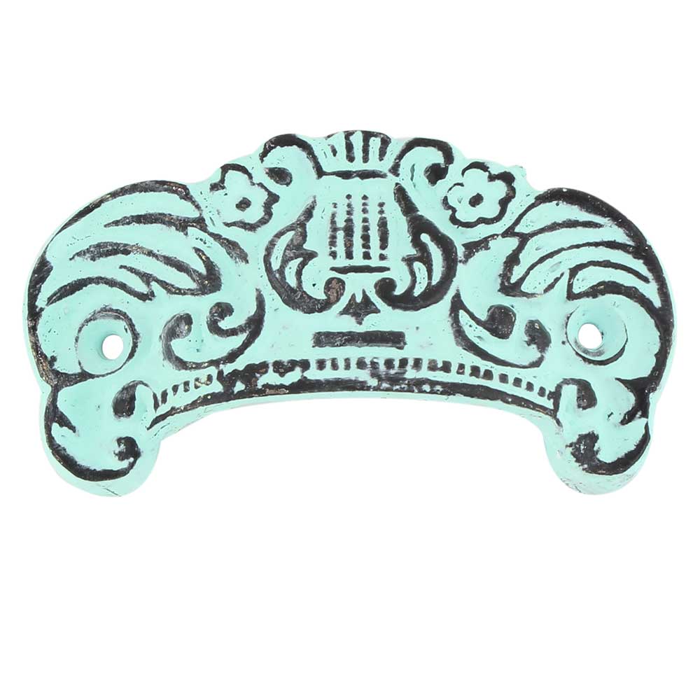 Made from durable iron, this handle is designed to withstand everyday use while keeping its charm and functionality. The distressed aqua green finish continues to look beautiful over time, giving your furniture a unique, aged appearance.