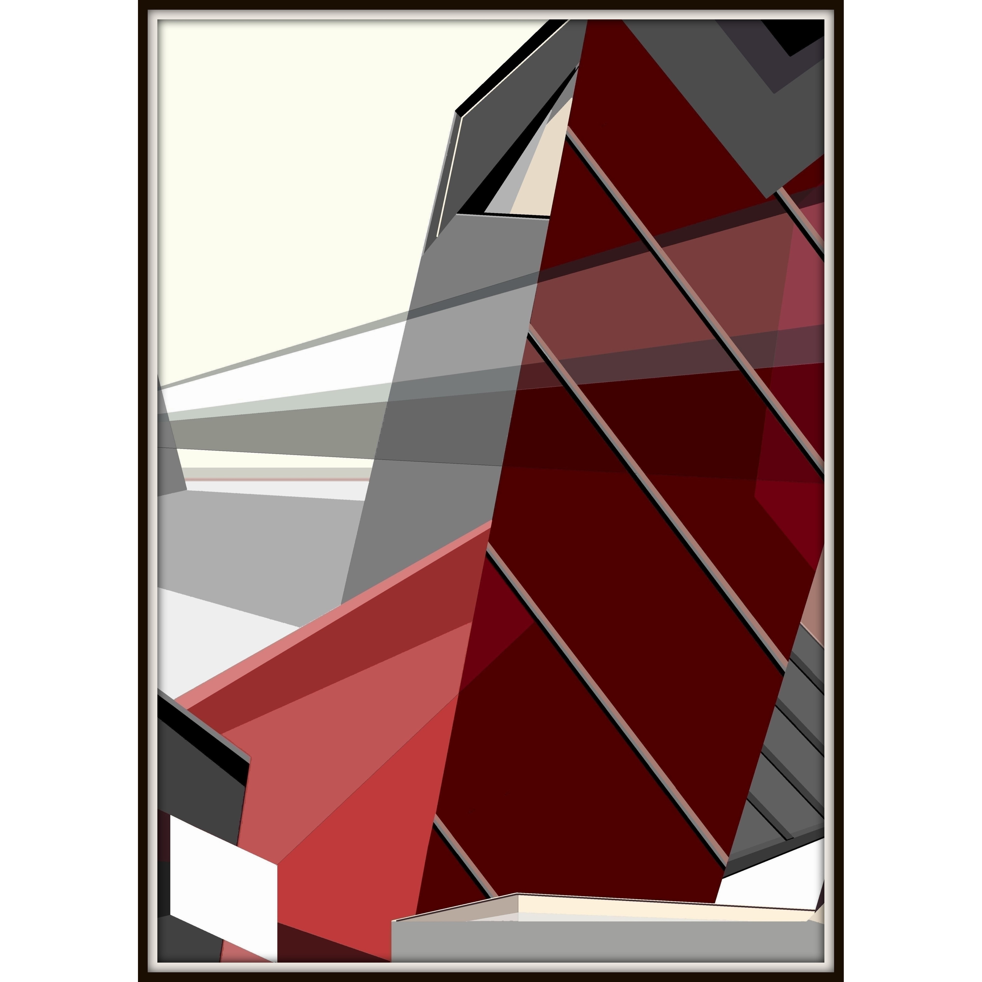 Architectures of Tension is a compelling triptych of digital artworks on canvas paper that explores the dynamic interplay between geometric structure and abstract fragmentation. Each piece in this series captures the restless dialogue between form and space, with angular planes, bold diagonals, and intersecting lines evoking movement, imbalance, and latent force. The dominant reds, greys, and blacks contrast sharply against pale backdrops, heightening the sense of spatial conflict and architectural ambiguity. These compositions provoke reflection on how built environments both define and confine us. As a series, the works resonate with a unified visual rhythm that mirrors the contradictions of modernity and structure.
