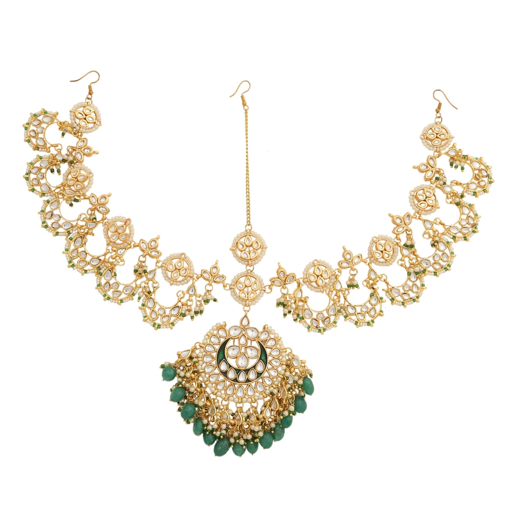 Celebrate ceremonial elegance with this artisan-crafted crescent kundan bridal maang tikka set, designed to frame the face with intricate stone detailing and traditional craftsmanship. Ideal for weddings, festive rituals, and heirloom gifting. Packed & quality-checked by Indianshelf.