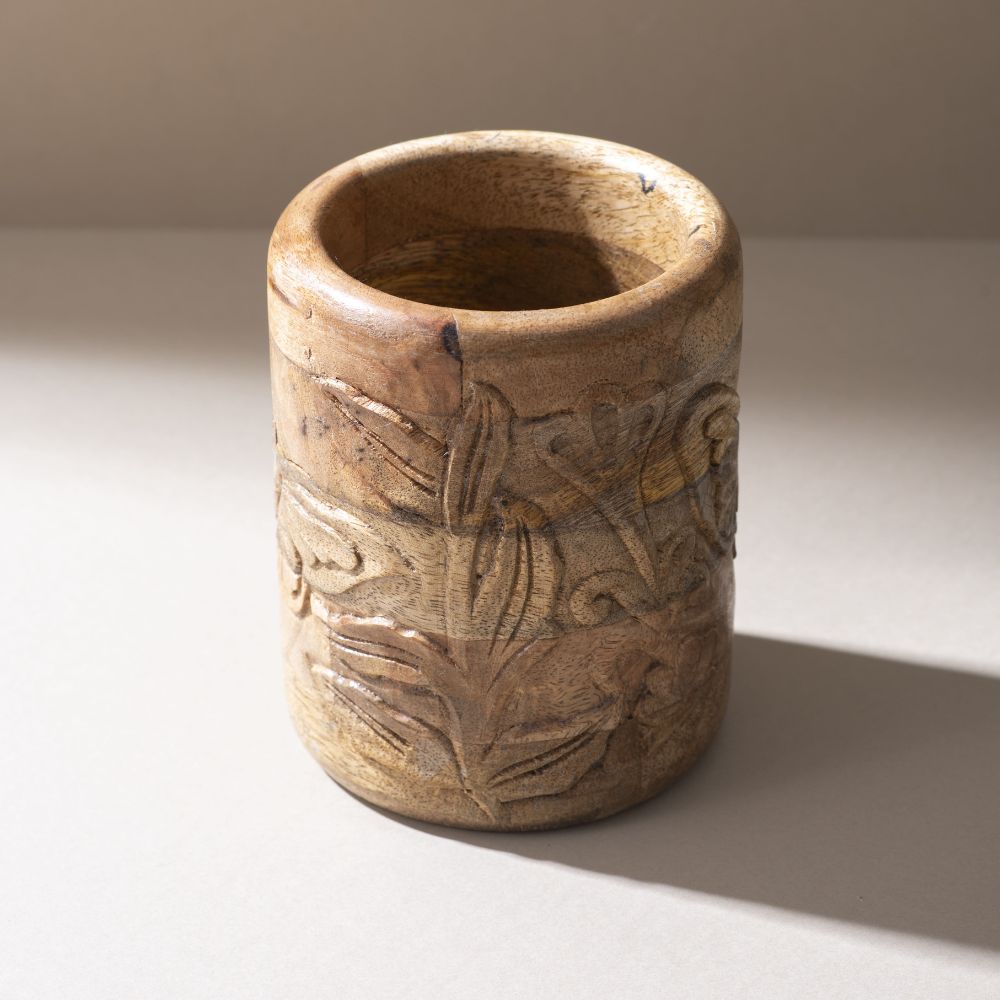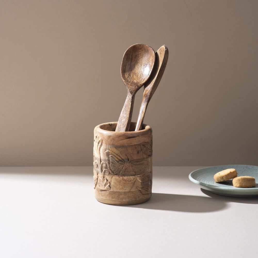 Elevate your kitchen counter with the Artisan Leaf-Engraved Spoon Stand, crafted from quality wood and detailed with a delicate leaf engraving. This stand not only organizes your cooking tools but also adds a nature-inspired charm to your space. A perfect blend of beauty and function for everyday kitchens.