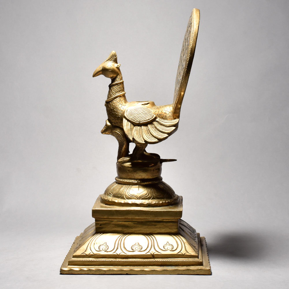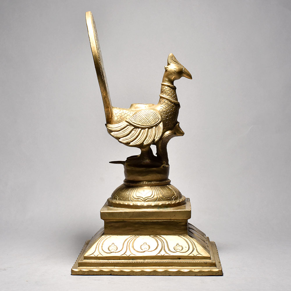Bring the majestic beauty of India's national bird right into your home with this stunning Artistic Peacock Stand. Crafted by skilled artisans in South India, this exquisite piece is a true work of art that will captivate anyone who lays eyes on it. This artistic peacock stand is so much more than just a decorative piece - it's a magnificent statement of Indian culture and heritage that will elevate the style and ambiance of any room. Imagine placing your favorite plants, candles, or knickknacks atop this stunning pedestal, or using it to showcase treasured family photos or artwork.The perfect fusion of form and function, this peacock stand is a must-have for anyone who appreciates fine craftsmanship and the beauty of nature. Whether you're looking to add a touch of global flair to your living space or searching for a thoughtful housewarming or birthday gift, this piece is sure to impress. Bring the majestic elegance of India's national bird into your home today with this one-of-a-kind Artistic Peacock Stand.