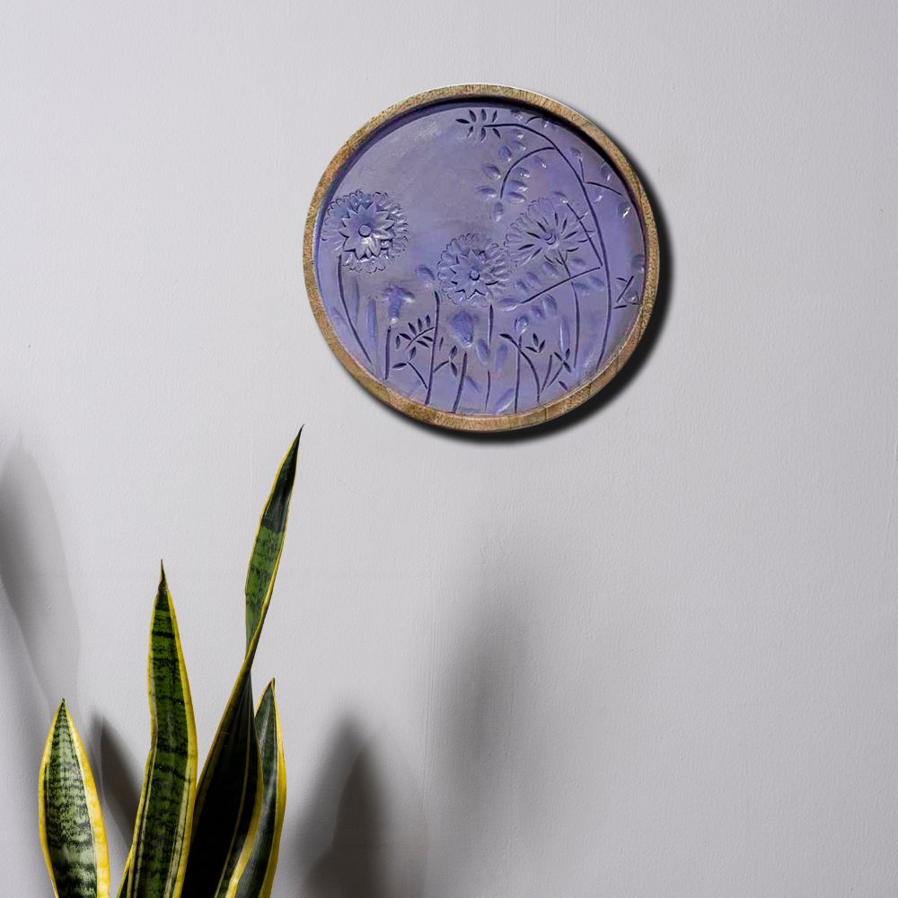 Add a vibrant artistic charm to your walls with the Artistic Purple Wooden Wall Plates, a stunning handcrafted set featuring floral carvings in blue and lavender hues. These round and rectangular plates blend contemporary design with traditional wood carving, making them a striking choice for stylish interiors.