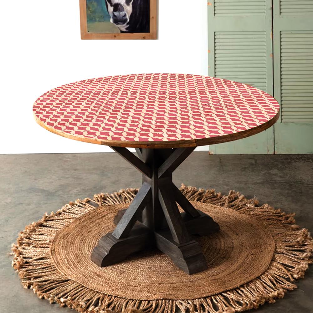 Buy a table top online that effortlessly combines elegance and functionality. Handmade by skilled Indian craftsmen, this exquisite piece is crafted with a harmonious blend of wood, acrylic, and resin. The captivating design features a pink background adorned with delicate white leaf patterns, adding a touch of grace and sophistication to any space. Designed to be versatile, this table top serves as a striking centerpiece for your dining table at home, enhancing its aesthetic appeal. It can also be used as a decorative element on coffee tables in restaurants or hotels, elevating the ambiance with its alluring presence. Not only does it serve as a visually pleasing ornament, but it also acts as a protective layer, safeguarding your table from dust. With its exceptional craftsmanship and high-quality materials, this table top boasts longevity, surpassing its counterparts in durability. Available in two options, circular and rectangular shapes, it offers versatility to suit different table designs and spaces. A perfect gift for special occasions or festive celebrations, this beautiful table top is sure to enchant your family, friends, or relatives. Its mesmerizing design and enduring quality make it a cherished and memorable present that will be treasured for years to come.