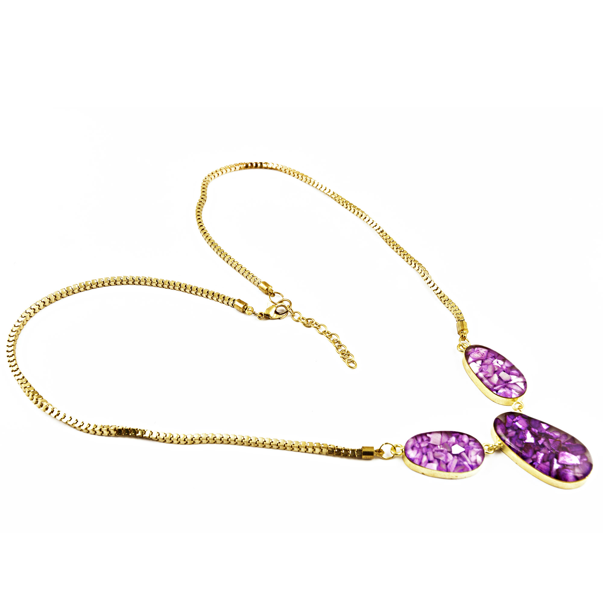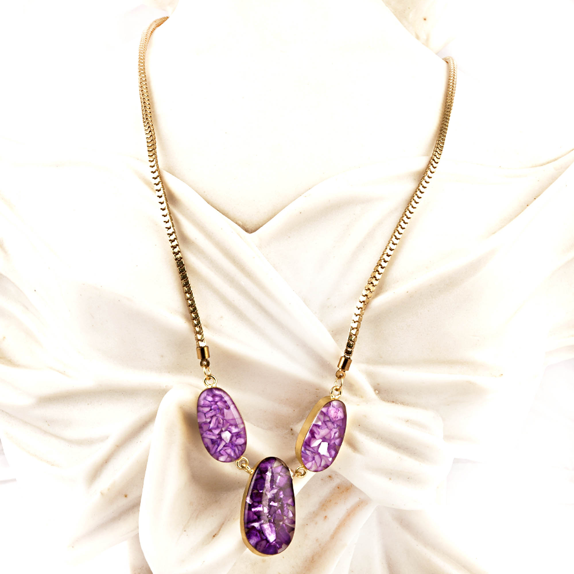 Auburgine Beabed Necklace New Beautiful Jewellery. Glass, Cotton and Brass String with Brass Clasp .