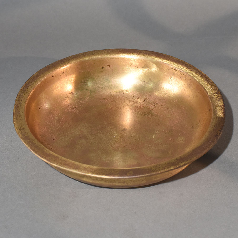 This vintage Himalayan brass pot bowl is a serene ritual object designed for sacred use. Crafted from solid brass, the bowl was traditionally used to hold water, flowers, or milk during religious ceremonies. Its broad rim and gently curved base provide stability, making it suitable for repeated ceremonial handling. The naturally aged brass finish gives the bowl a warm, muted glow that enhances its spiritual presence. Unlike polished decorative items, this piece retains its original surface, reflecting years of ritual use. It is especially well-suited as a flower decoration bowl, allowing petals to float gracefully during worship. Placed in a pooja room, meditation area, or sacred corner, it adds a sense of grounding and calm. The bowl can also be styled as a minimalist decor accent, pairing well with natural textures and subdued color palettes. This Himalayan brass bowl embodies quiet elegance and devotional purpose.