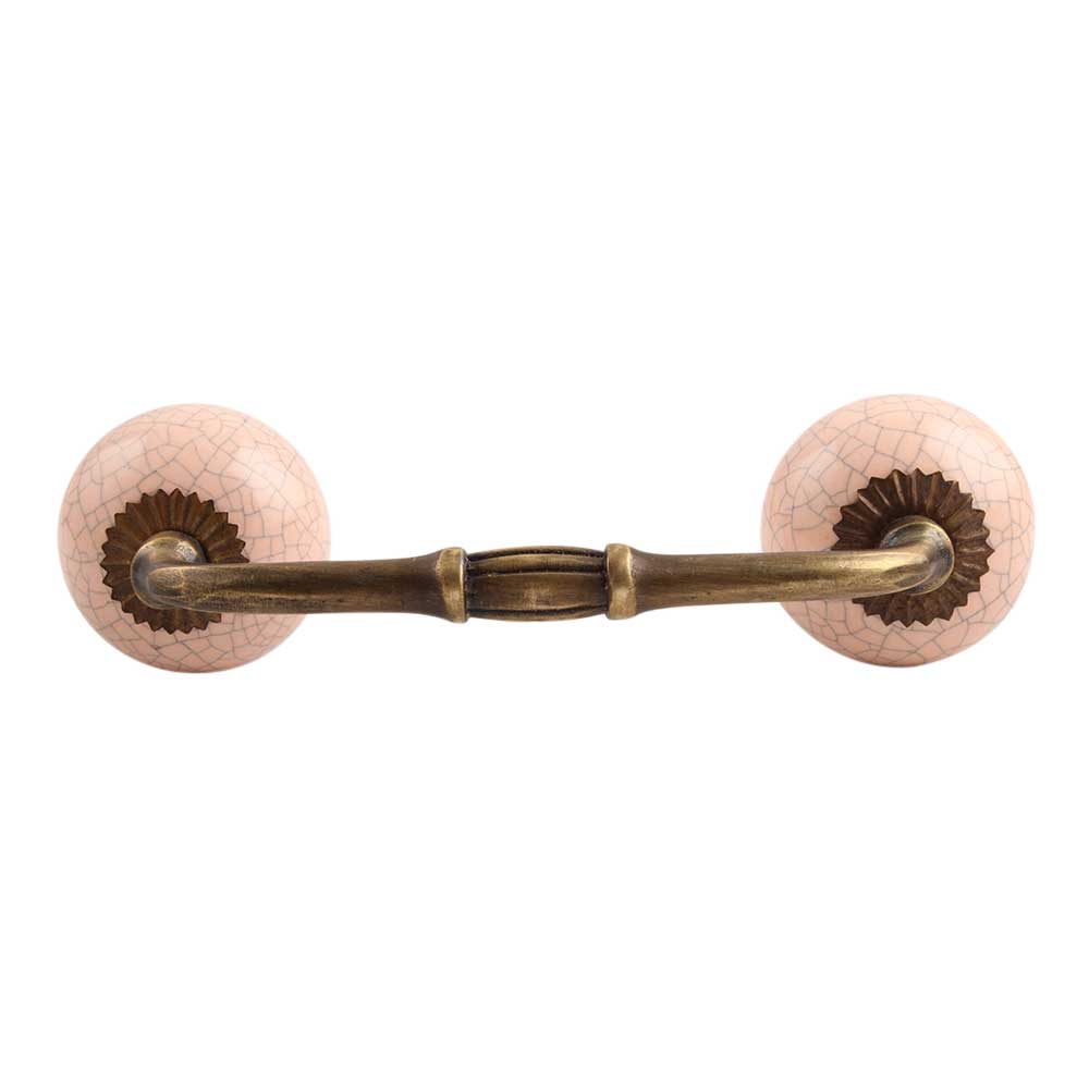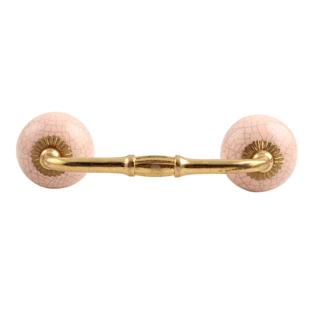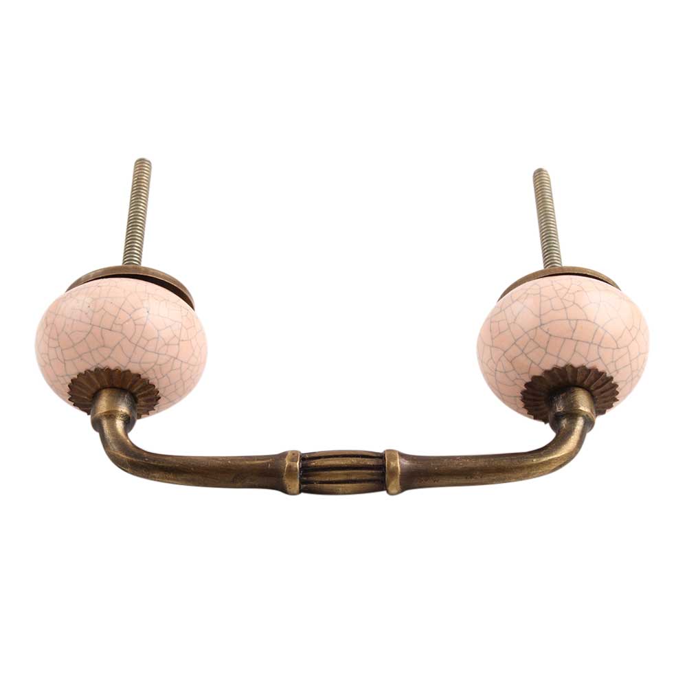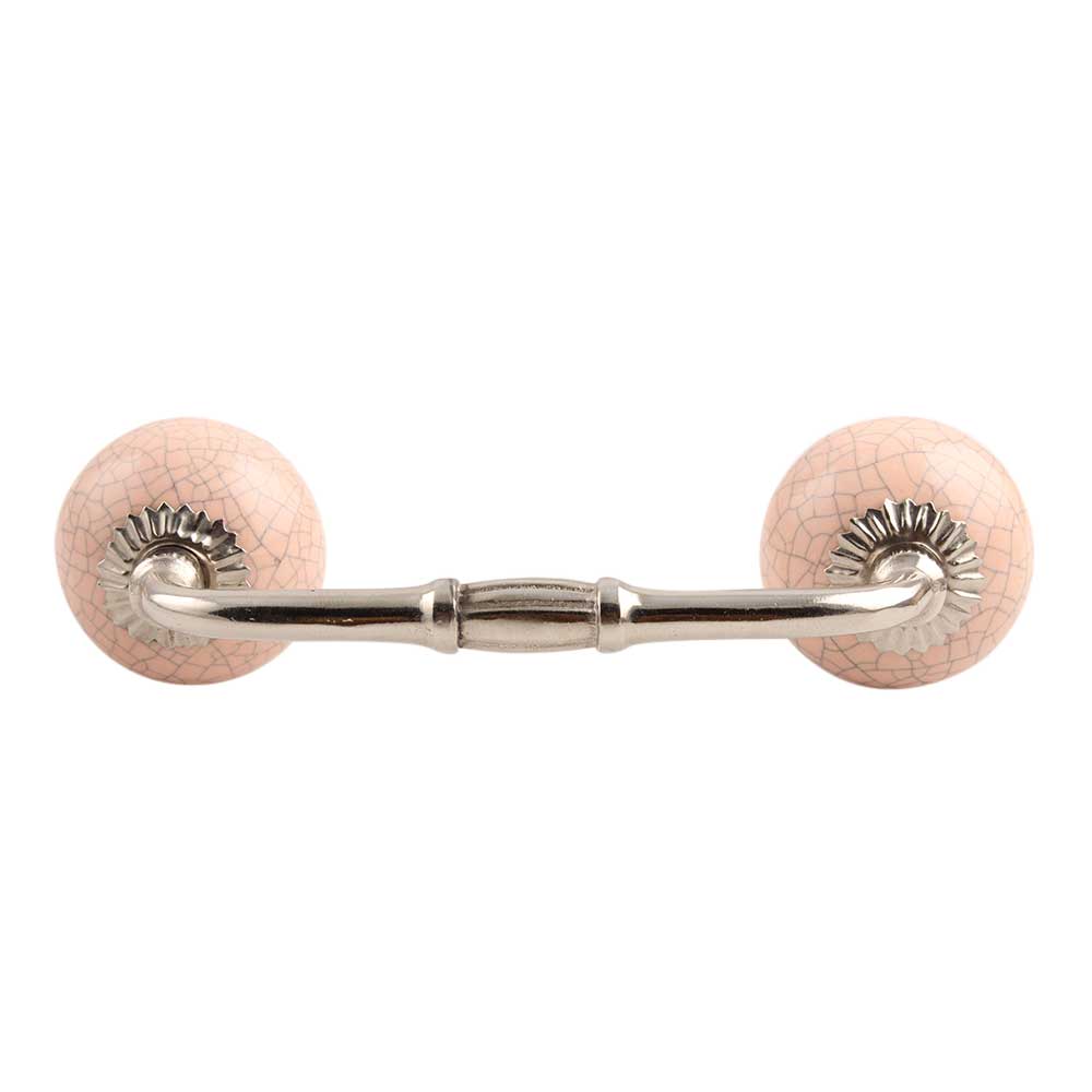 Baby Pink Crackle Ceramic Bridge Handle. Ideal for Drawer, Dresser, Cabinet, Wardrobe, Cupboard and Almirah.