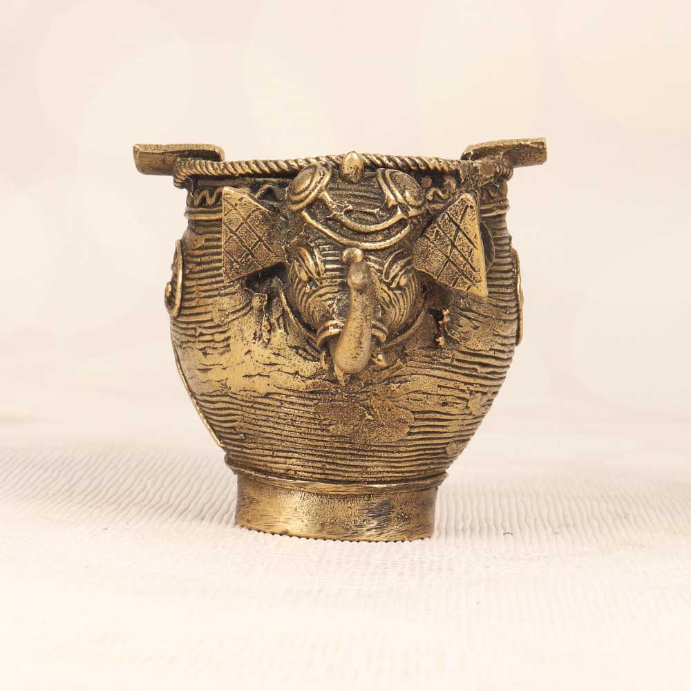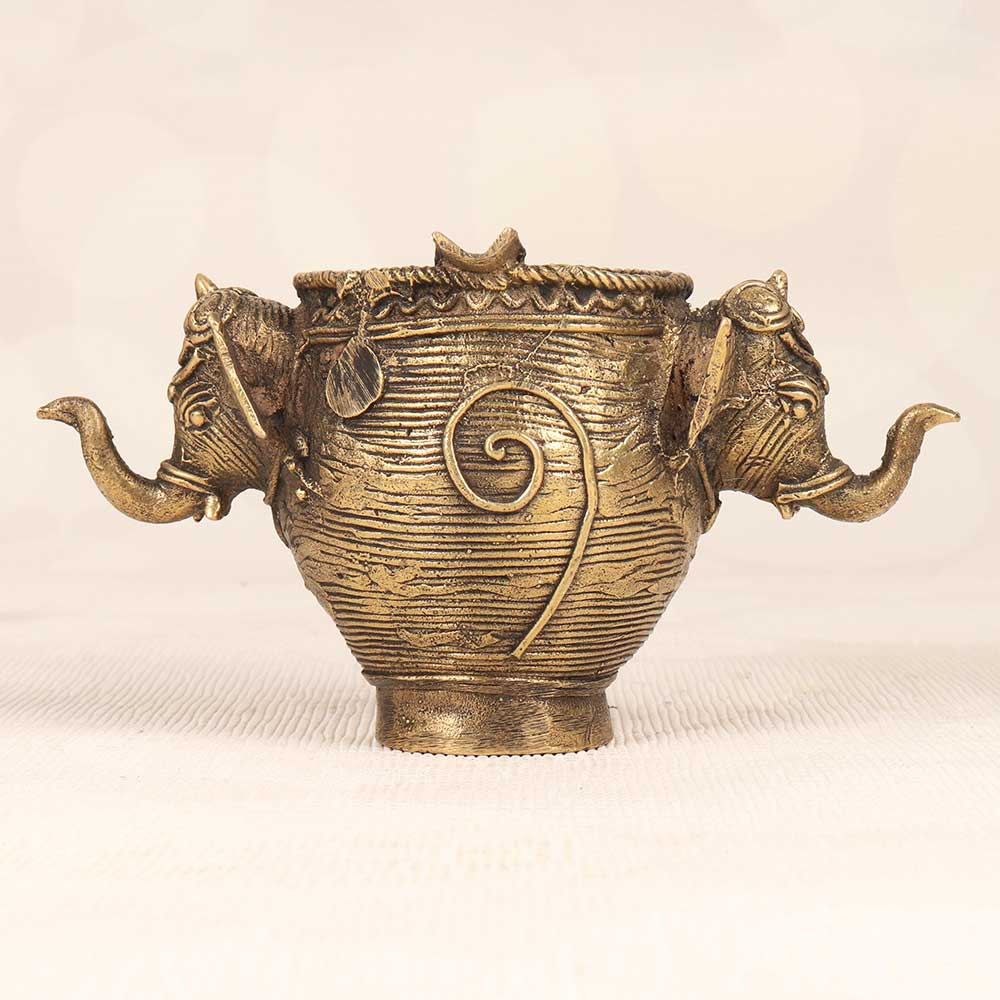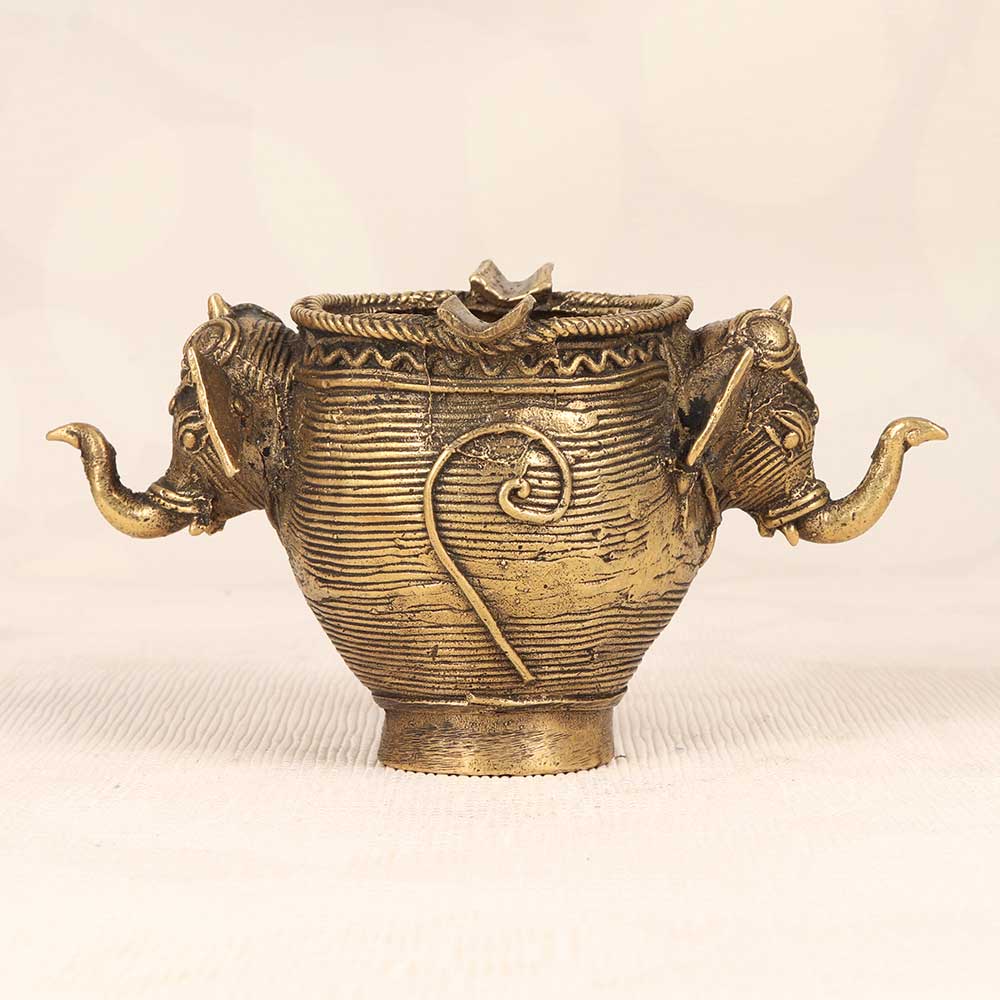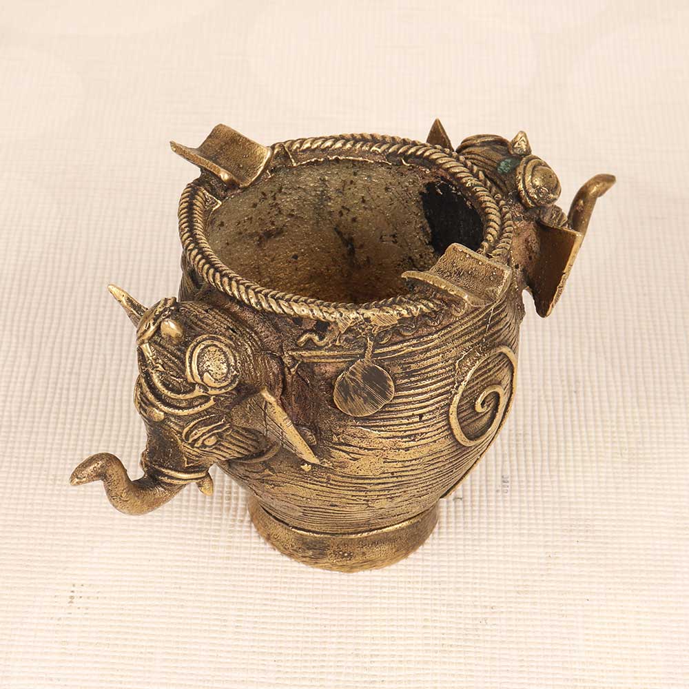 Infuse your kitchen with old-world charm with this antique brass pot engraved with ornate elephant carvings. This brass pot brings the style and warmth of yesteryear to your modern kitchen. The solid brass material provides superior heat distribution for perfectly cooked stews, braises, and soups. Meanwhile, the detailed elephant engravings give this pot vintage appeal and make it an eye-catching accent on your stovetop. Whether you're drawn to antique kitchenware or just want to add a touch of nostalgia to your cooking, this pot delivers gorgeous form and reliable function. Make your family dinners feel like special occasions with delicious dishes prepared in this antique-style brass pot.