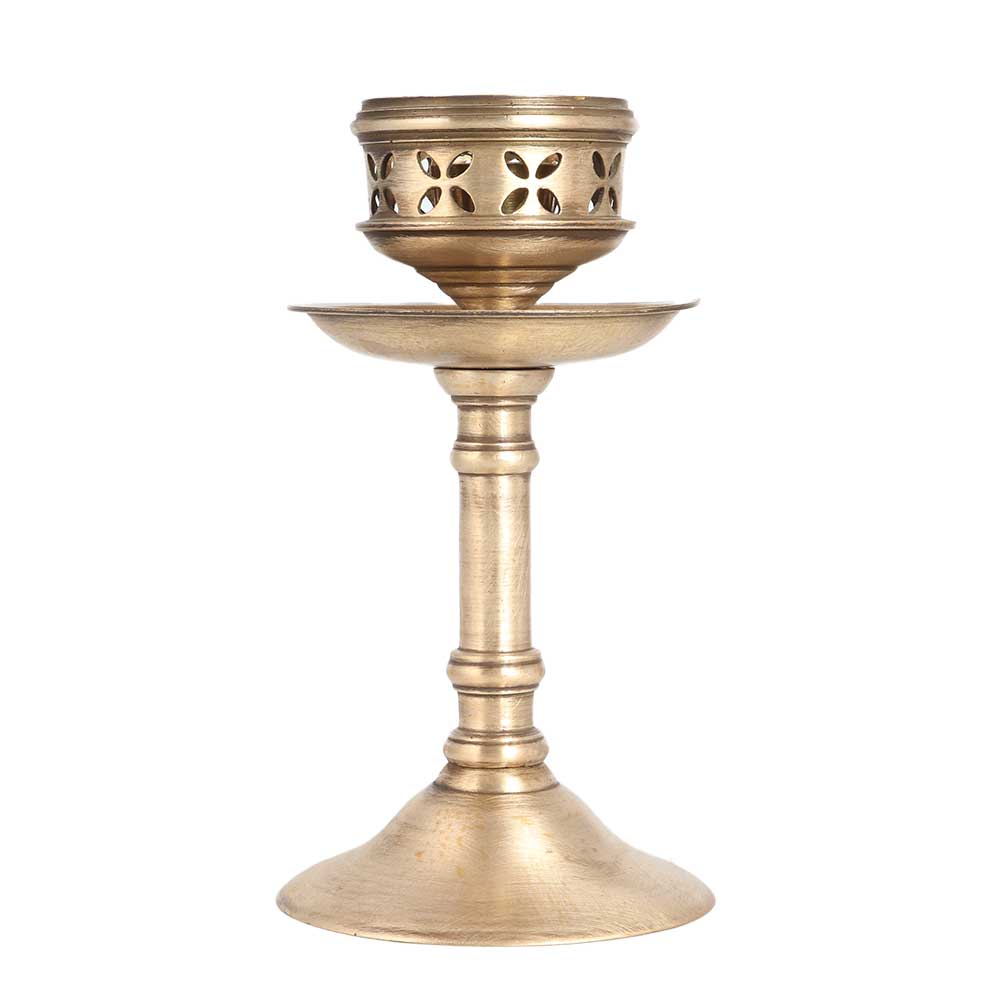A beautiful candlestick made of high quality brass in golden finish that will give your interior a seductive look. Brass candle stands have been used for centuries on special occasions to spend time with family or friends. It is often used in restaurants and hotels to provide a pleasant experience for guests. This candle holder is handmade by highly skilled and experienced Indian craftsmen using traditional methods. This candle holder will remind you of your rich heritage when it is placed in your home. Display it in a museum, exhibition or vintage collection and it will be a center of attraction. A nice gift for your loved ones on special and festive occasions.