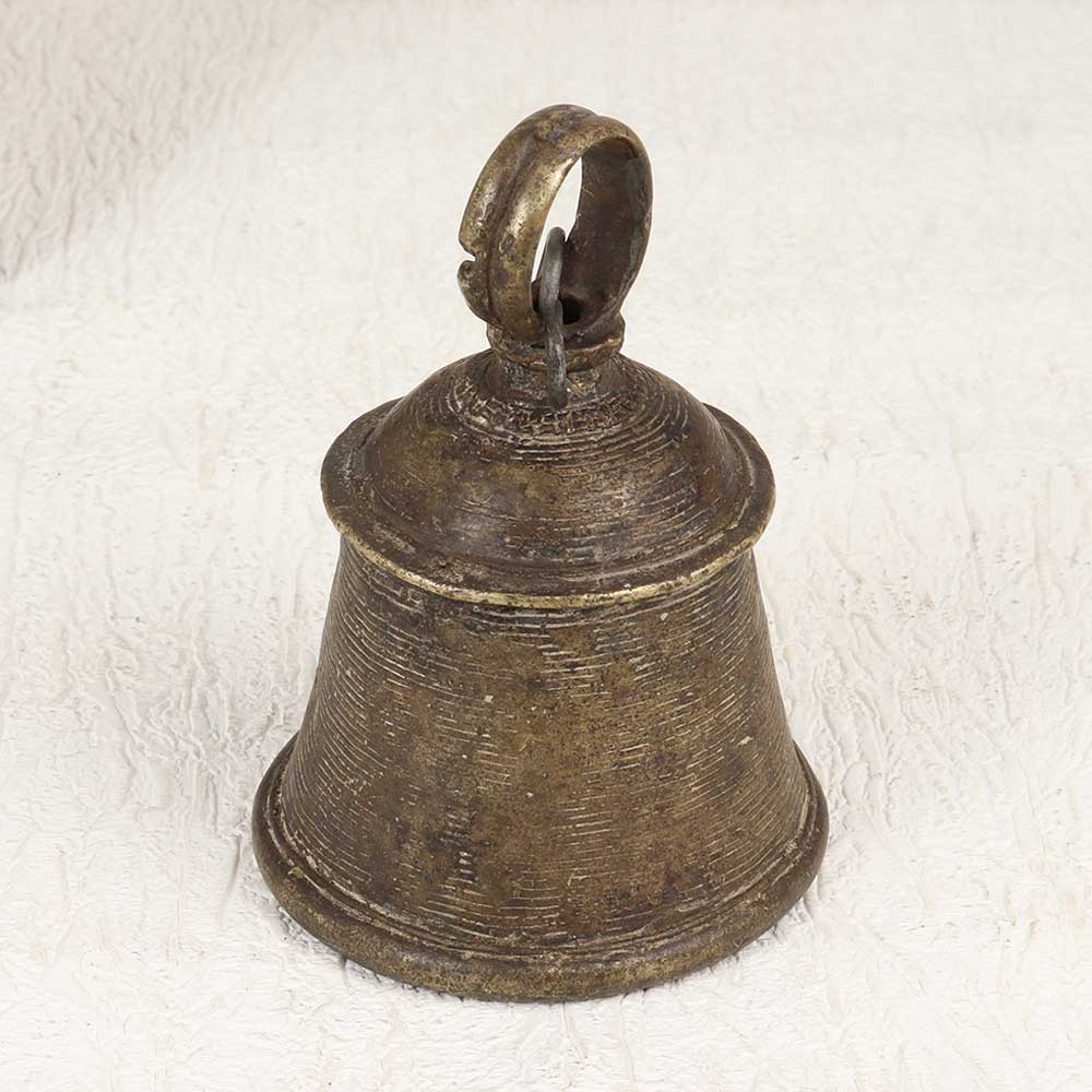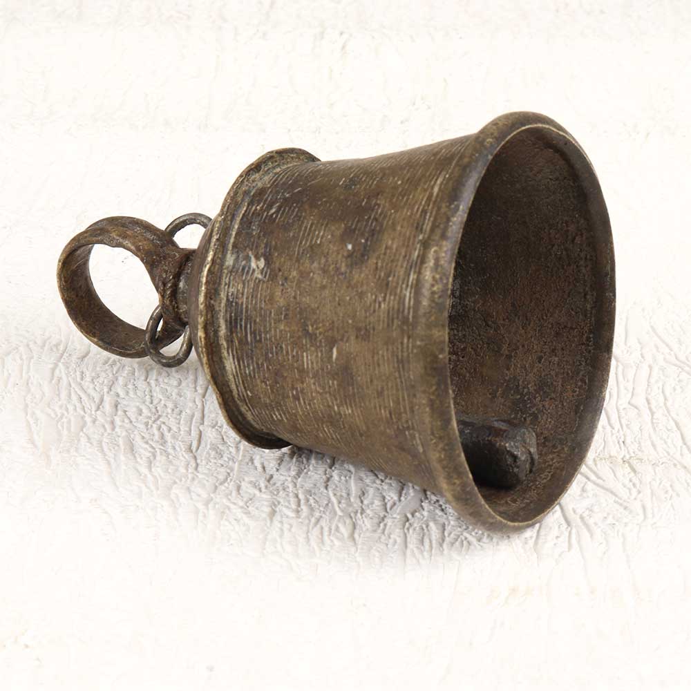Vintage weathered brass bell with hanging loop