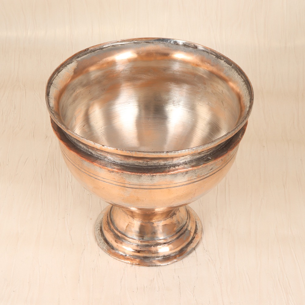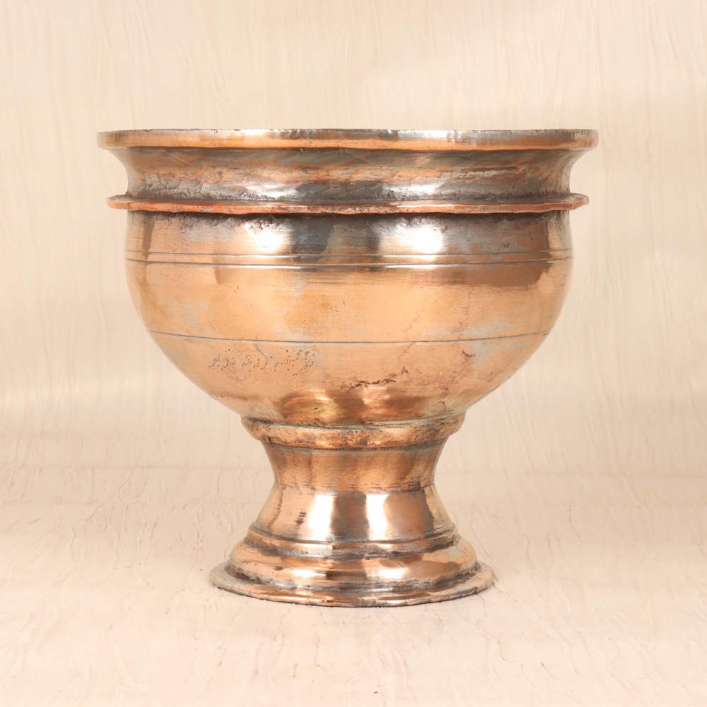 Elevate your home decor with this stunning vintage copper pot, a captivating piece that celebrates the timeless beauty of Islamic art. Crafted with meticulous attention to detail, this pot is a true work of art that will transform any space. The plain finish of this vintage copper pot allows the natural beauty of the material to shine, while the Islamic-inspired design adds an elegant touch that is both timeless and contemporary. Whether you place it on your dining table, mantelpiece, or side table, this pot will instantly elevate your space and bring a touch of sophistication. Imagine the joy of arranging a vibrant bouquet in this stunning vessel, its warm copper tones complementing the vibrant hues of the flowers. Or use it to showcase your favorite succulents, creating a modern, minimalist display that showcases the natural beauty of the plant. This versatile pot is the perfect addition to any home, from the modern city loft to the cozy country cottage. Don't settle for ordinary flower pots - invest in a piece of art that will bring joy and beauty to your space for years to come. Elevate your home decor with this stunning vintage copper pot, and let the timeless elegance of Islamic art inspire you to create breathtaking floral displays that will captivate all who see them.