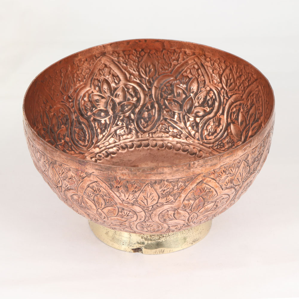 Enhance your decor with this exquisite Vintage Copper Bowl that is a testament to the artistry and craftsmanship of highly talented Islamic artisans. Handmade from high-quality copper, this timeless piece features intricate engravings that showcase the rich heritage of Islamic art. The antique brown finish lends a warm, rustic charm, making it a versatile addition to any space. Whether adorning your home, office, restaurant, hotel, or cafe, this copper bowl effortlessly enhances the ambiance, adding a touch of elegance to your surroundings. Its dual functionality extends beyond mere decoration – use it as a captivating indoor flower pot, bringing nature indoors with style. This vintage copper bowl isn't just a decor item; it's a collector's dream. Its unique design and historical allure make it a valuable addition to any vintage collection. Embrace the spirit of gift-giving by presenting this exquisite bowl to your family, friends or relatives on special, festive, or auspicious occasions. Each piece tells a story of artistry, tradition, and the timeless beauty of handcrafted treasures.
