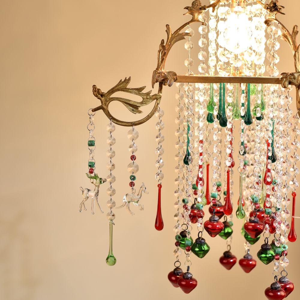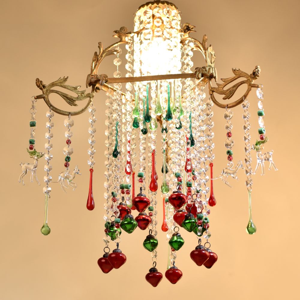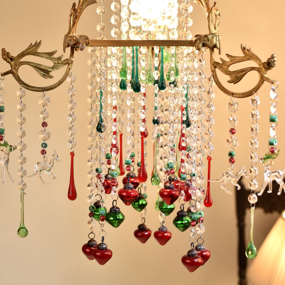 Buy a Crystal Clear Glass and Brass Chandelier online which is a timeless piece of artistry that seamlessly blends elegance and charm. Crafted with precision from premium-quality brass and crystal-clear glass, this chandelier is a stunning addition to any space, be it your home, restaurant, hotel, or cafe. At its core, the chandelier holds a radiant bulb that illuminates the surrounding area with a soft, warm glow, creating a welcoming ambiance for all. Surrounding the central light source are delicately designed hanging animal glass ornaments, each adorned with a captivating crystal clear finish that reflects and refracts light, enhancing its splendour. Adding a playful touch, the chandelier features multi-coloured hanging accents that add a burst of vibrancy and liveliness to any setting. This chandelier's adorable design makes it an enchanting focal point, becoming an eye-catching decoration for any room. Its versatility knows no bounds; it elevates the ambiance of your home, adds opulence to the dining experience in a restaurant, impresses guests in a hotel's grand foyer, and brings a touch of whimsy to a cafe's decor. Furthermore, this stunning chandelier makes for an ideal gift for your family, friends or relatives on special, festive, or auspicious occasions. By gifting this masterpiece, you share not only a captivating decoration but also the essence of elegance and sophistication.