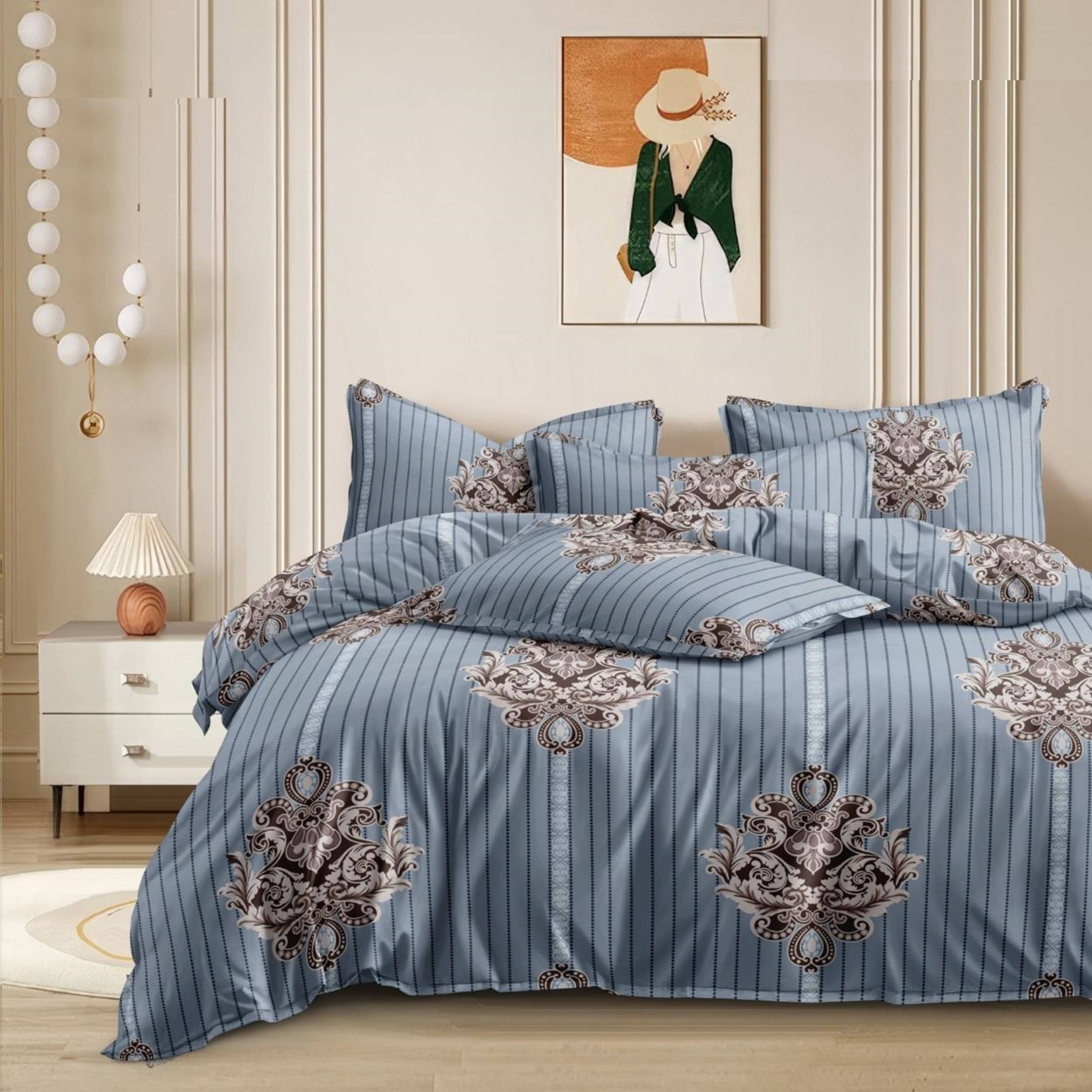 Immerse yourself in the softest and most luxurious cotton fabric that is breathable, natural, and hypoallergenic. Perfect for sensitive skin, this cotton fabric is not only gentle but also naturally resistant to dust mites, making it an ideal choice for allergy sufferers. Cotton is known for its ability to reduce allergens, making it ideal for those with allergies or sensitive skin. The natural fibers allow your skin to breathe, keeping you fresh and comfortable throughout the night. Feel the difference every time you lie down on the smooth, soft texture of this bed sheet set. Cotton's ability to regulate temperature ensures you stay cool in the summer and warm in the winter, offering comfort throughout the year. Made to last, this bedsheet set is highly durable and will retain its softness, color, and shape even after multiple washes. You can count on this set to stay looking beautiful for years, thanks to the high-quality craftsmanship and cotton fabric used. Available in a variety of sophisticated patterns and vibrant colors, this bedsheet set is designed to complement any bedroom décor. From classic to contemporary, its timeless appeal will easily blend with your existing furniture and accessories, adding a touch of elegance and style.