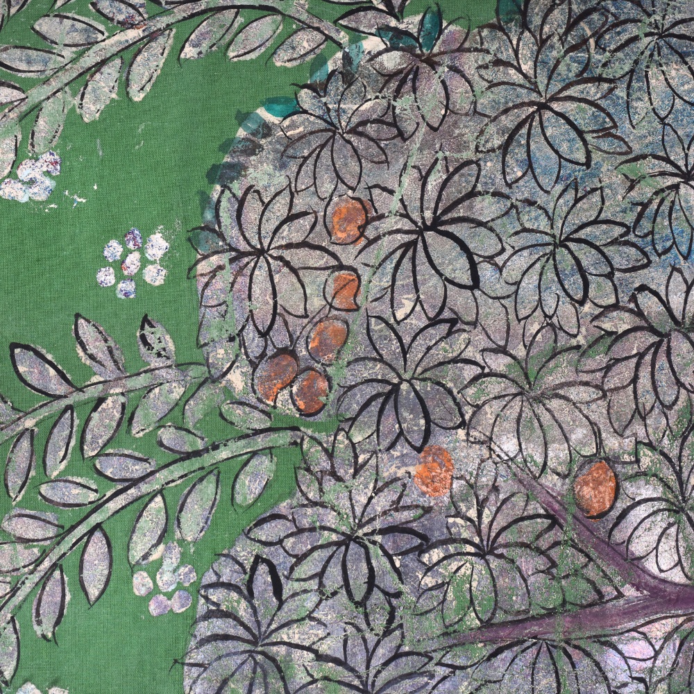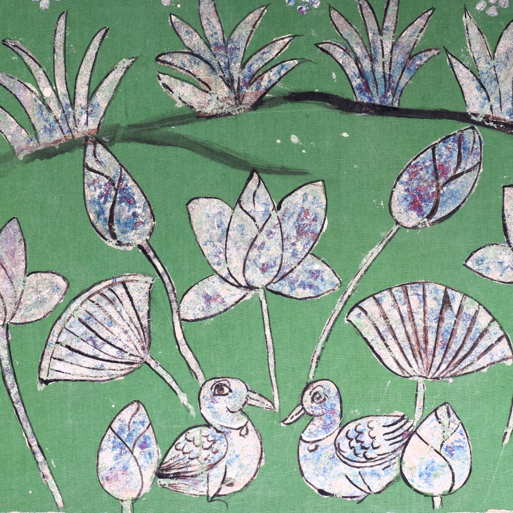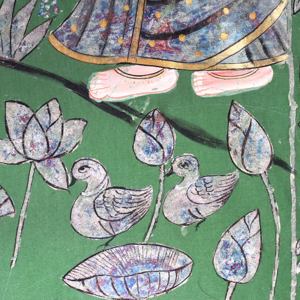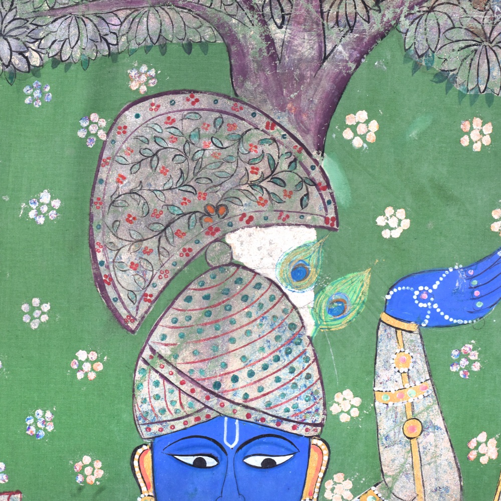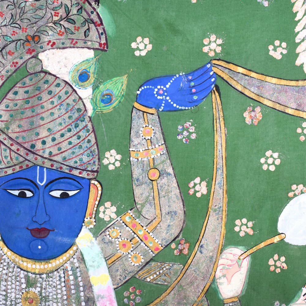 - Handcrafted cloth pichwai painting of Lord Krishna with two gopis