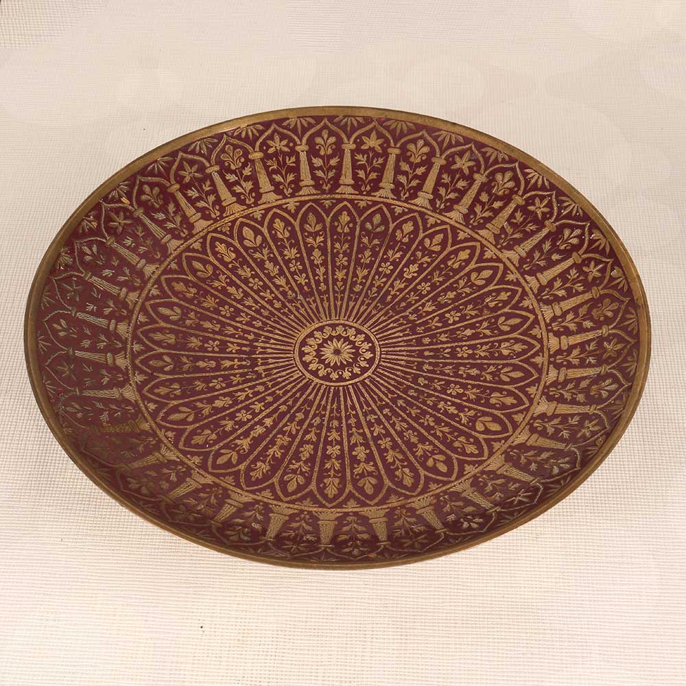 This antique-inspired brass fruit bowl from Hyderabad infuses any space with artisanal appeal. Meticulous red enamel detailing along the bowl's rim adds a vivid pop of color and showcases India's rich handicraft heritage. Skilled artisans in Hyderabad handcrafted this bowl, painstakingly applying beautiful red enamel detailing along the rim. This enamelwork contrasts elegantly against the brass body, creating visual interest. Allow this heritage-inspired bowl to become the shining star of your kitchen, dining room, or home decor. The vintage look combined with vibrant handmade enamel accents give this piece an heirloom vibe. Let it spark conversation when you display fruits, veggies, or goodies. This striking bowl allows you to: