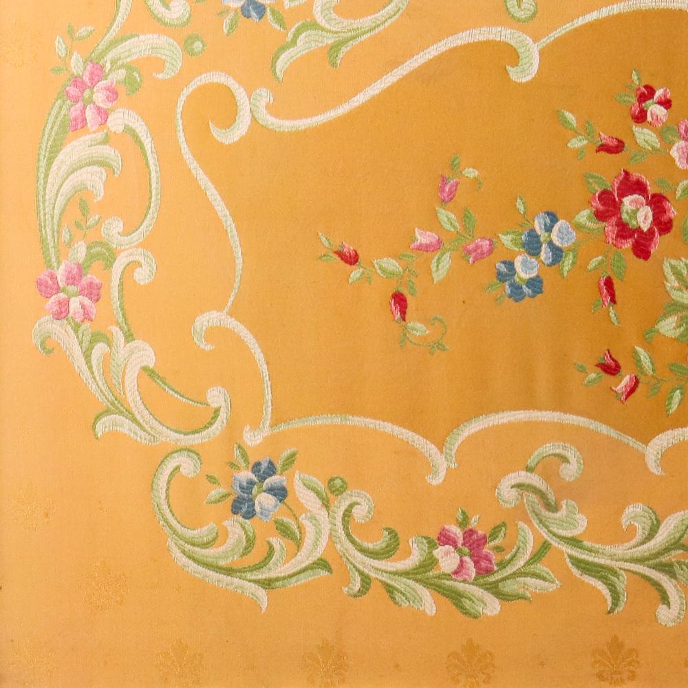 - Soft cloth canvas with vintage floral framing.