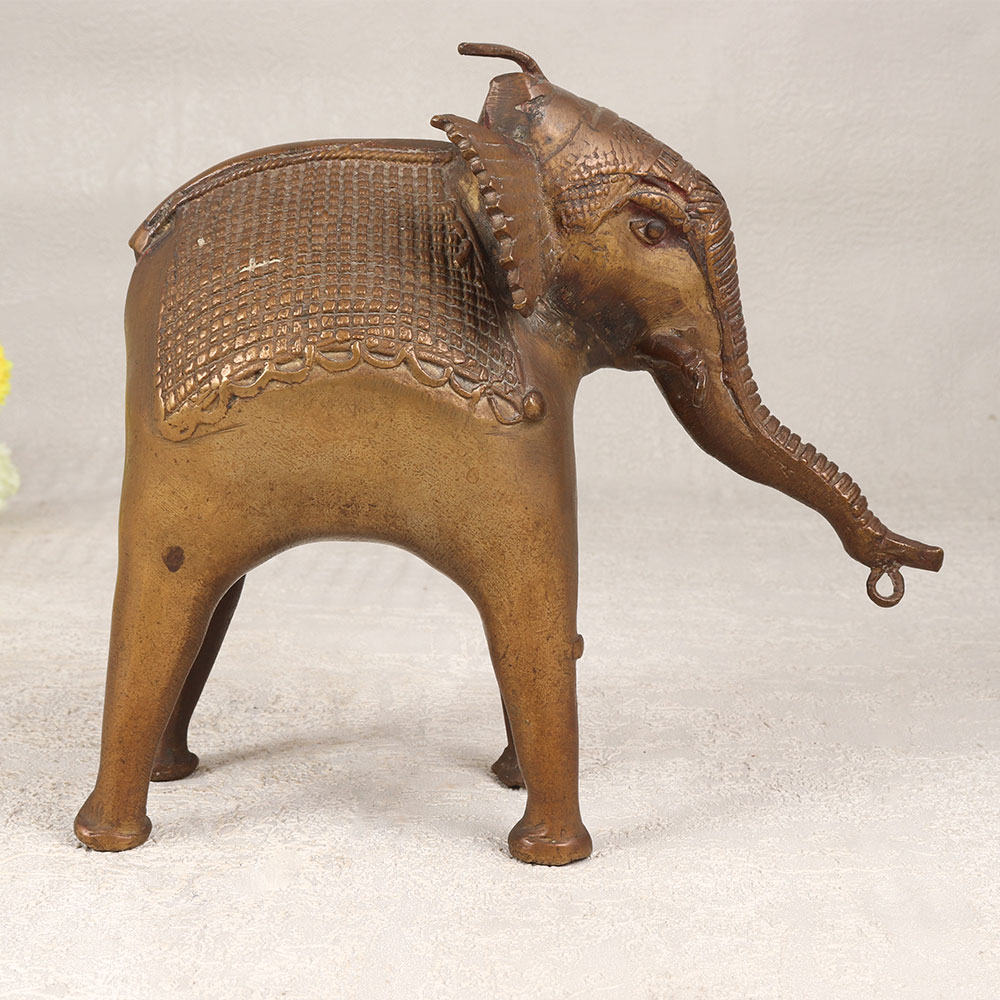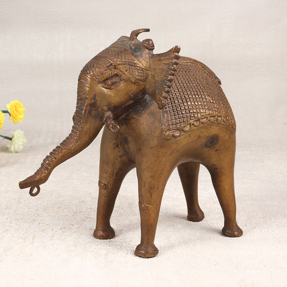 Enhance your space with the enchanting allure of our brass Elephant statue that is a testament to exquisite craftsmanship and timeless design. Handcrafted by highly talented Indian artisans specializing in Tribal Art, this magnificent piece boasts a rich antique brown finish that adds an air of sophistication and vintage charm. Crafted from high-quality brass, the statue captures the majestic essence of an elephant, symbolizing strength, wisdom, and prosperity. Its intricate detailing and traditional craftsmanship showcase the dedication and expertise of the artisans, making it a unique and striking addition to any environment. Whether adorning your home, office, restaurant, hotel, or cafe, this brass Elephant statue serves as a captivating decorative piece. Perfect for enthusiasts of vintage aesthetics, it seamlessly blends tradition with contemporary style. Additionally, it makes for a thoughtful and meaningful gift for your family, friends or relatives on special, festive, or auspicious occasions, adding a touch of cultural richness to their lives.