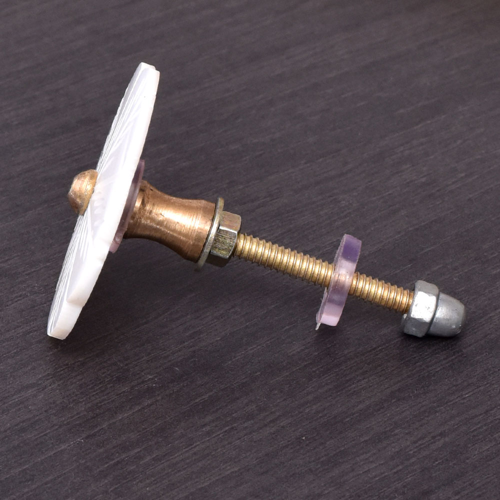 Crafted from an exquisite mother of pearl, this knob showcases a beautiful white hue that adds a touch of sophistication to any furniture piece. The natural iridescent quality of the material reflects light in different angles, making the knob appear to glow softly.