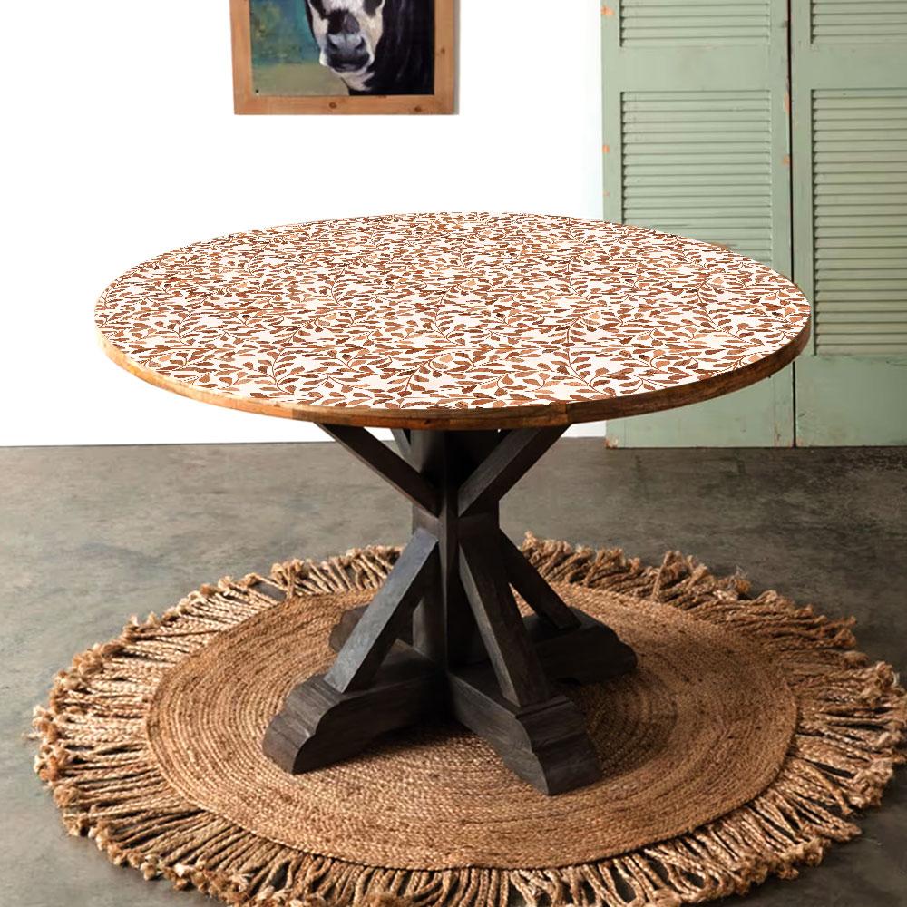 Buy a beautiful table top online that is a stunning fusion of wood, acrylic, and resin craftsmanship. This captivating piece features a mesmerizing brown leafs pattern meticulously engraved on a pristine white background. Created by skilled Indian artisans, it showcases intricate designs that are sure to catch the eye and add a touch of elegance to any space. Ideal for adorning your dining table at home, this versatile table top also serves as a beautiful decoration on coffee tables at restaurants or hotels. Its exceptional quality ensures longevity, surpassing the durability of other table tops. With two shape options available—a circular and a rectangular design—you can choose the perfect fit for your desired setting, whether it be for a dining table, bedside table, or side table. This table top also makes for a thoughtful gift for your loved ones on special or festive occasions. Its unique blend of materials and exquisite craftsmanship is sure to leave a lasting impression, making it a truly remarkable addition to any space.