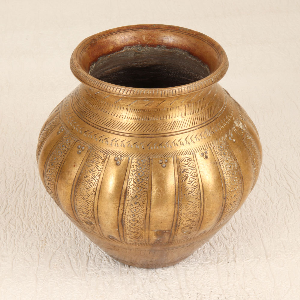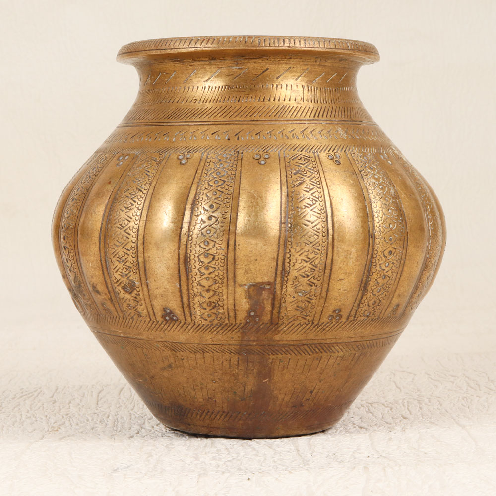 Decorate your living room with our Vintage Brass Holy Water Pot. Crafted with precision by highly skilled and experienced Indian artisans in the timeless South Indian Art tradition, this pot seamlessly blends spirituality with artistry. The pot is made from high-quality brass which showcases intricate engravings that tell stories of ancient rituals and divine significance. The antique brown finish adds a touch of nostalgia, giving the pot a vintage allure that resonates with history. Perfect for prayers, rituals, and havans, this holy water pot is a versatile addition to your sacred space. Its elegance knows no bounds, making it suitable for homes, offices, restaurants, hotels, or cafes, enhancing the ambiance of any prayer room. Beyond its spiritual utility, this pot transforms into a charming indoor flower pot, further contributing to the aesthetic appeal of your space. Embrace the charm of yesteryears by adding this masterpiece to your vintage collection, or present it as a thoughtful gift to your family, friends or relatives on special, festive, or auspicious occasions.