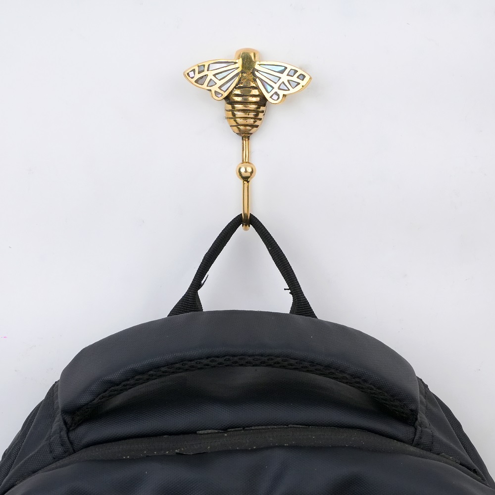 Add a touch of elegance and artistry to your walls with this Bee Design Brass & Mother of Pearl Wall Hook. Expertly handcrafted from premium brass, this charming hook features a bee-shaped design beautifully inlaid with shimmering Mother of Pearl detailing blending luxury with functionality. Perfect for hanging towels, bags, keys, or accessories, this wall hook is not just a utility piece but also a stylish dcor accent. Its sturdy construction ensures durability, while the polished golden finish and pearly highlights bring a warm, sophisticated glow to any space be it your bathroom, entryway, or bedroom.