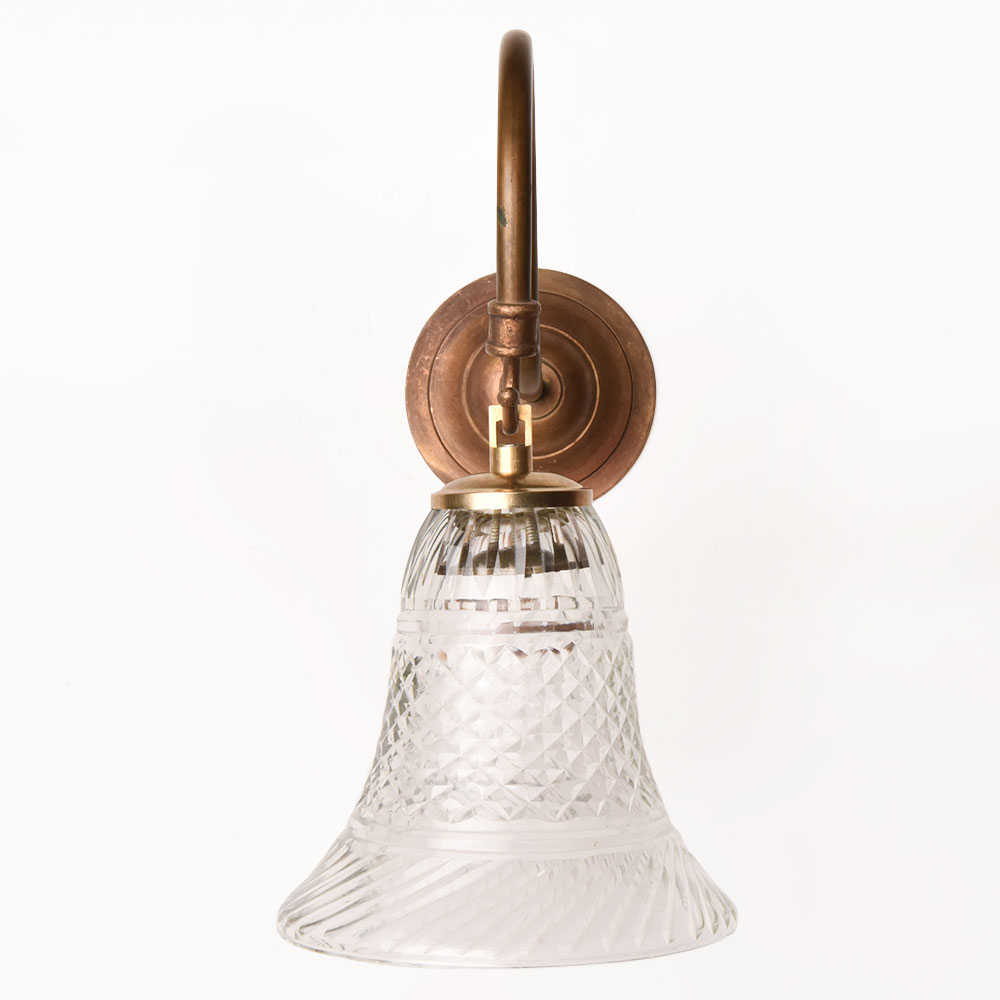 Bell shaped Etched Cross Hatched Pattern bronze bracket wall lamp. The lamp is unique and allows a great lighting option for any room.