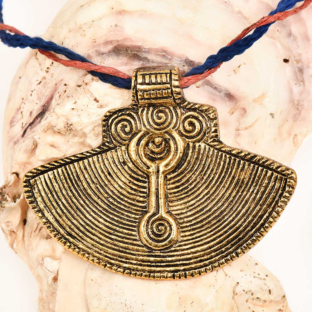 Make a radiant statement with this Big Fan-Shaped Golden Aluminum Pendant Necklace, a masterpiece of geometric artistry and traditional craftsmanship. Handcrafted by skilled artisans, the pendant features elegant engraved lines fanning outward — symbolizing energy, movement, and grace. Its lustrous gold finish and bold silhouette create a stunning focal point, blending the grandeur of tribal aesthetics with a modern, fashion-forward appeal.