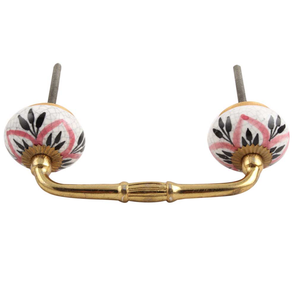 Black And Pink Floral Crackle Ceramic Bridge Handle. Ideal for Drawer, Dresser, Cabinet, Wardrobe, Cupboard and Almirah etc.