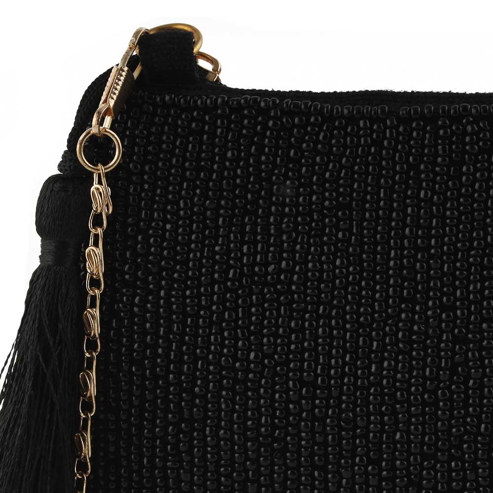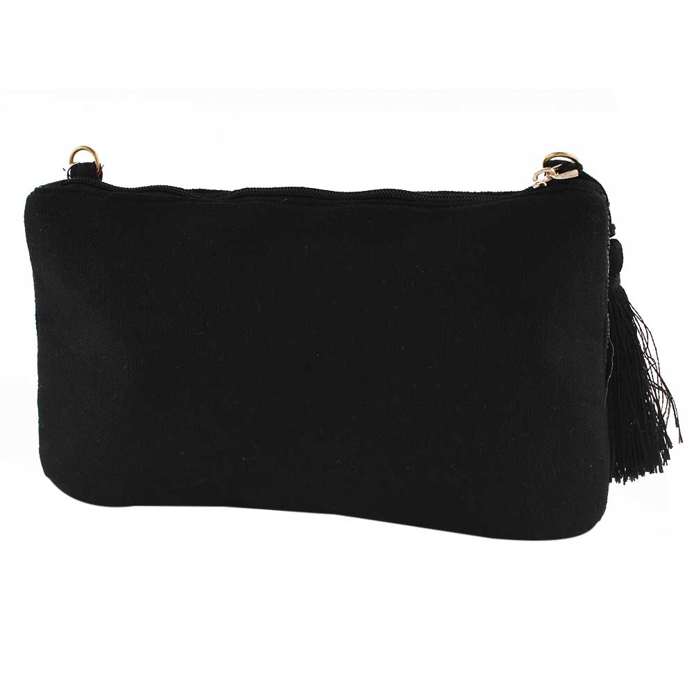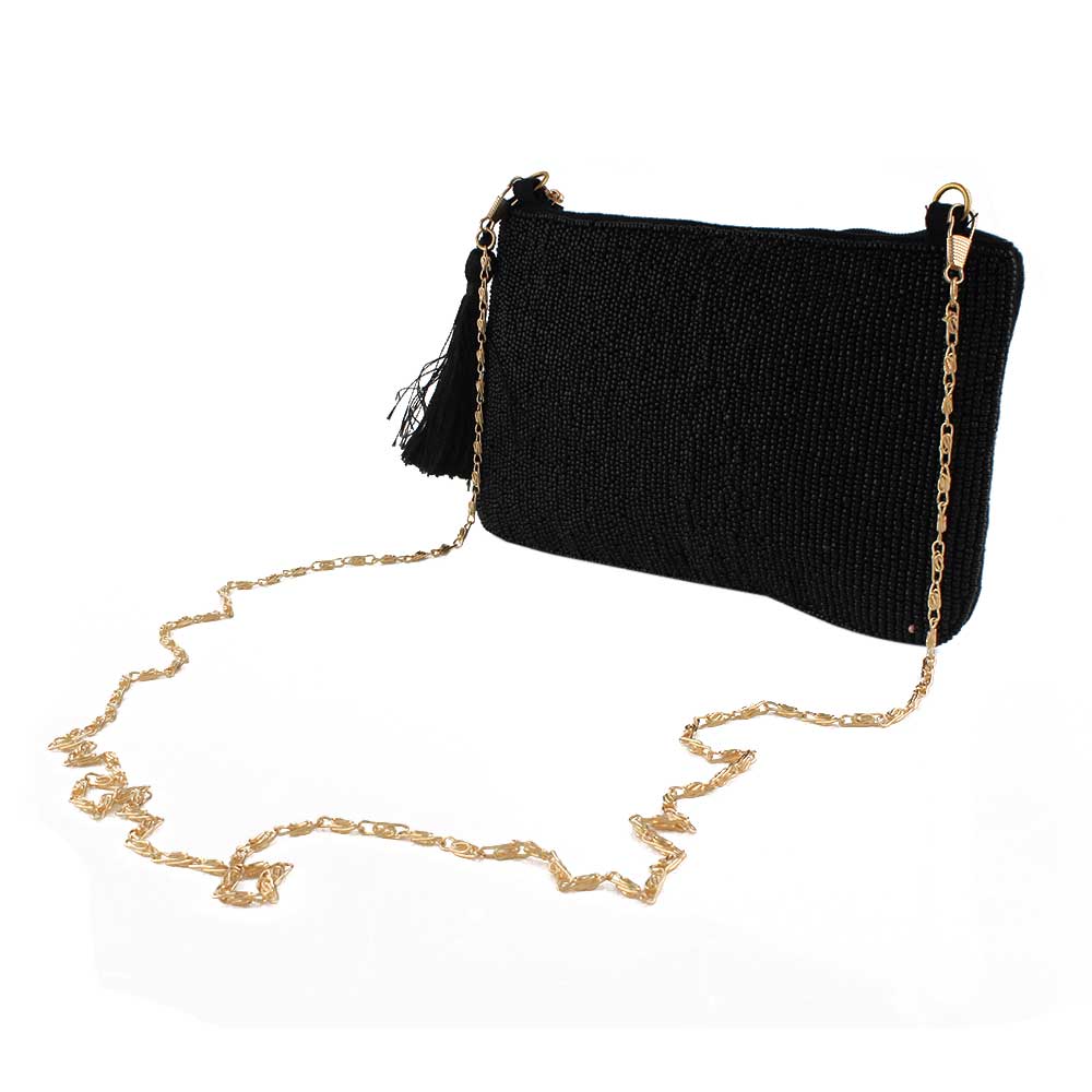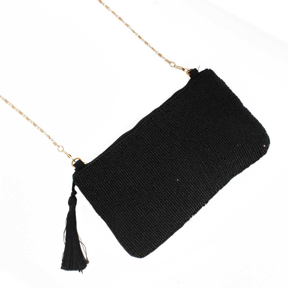 The ideal Celebration bag has arrived just in time for the fall season! The bag includes two side loops for interchangeable bag straps. It's a stylish bag. Black canvas base (back of clutch) and lining with acrylic seed beads.