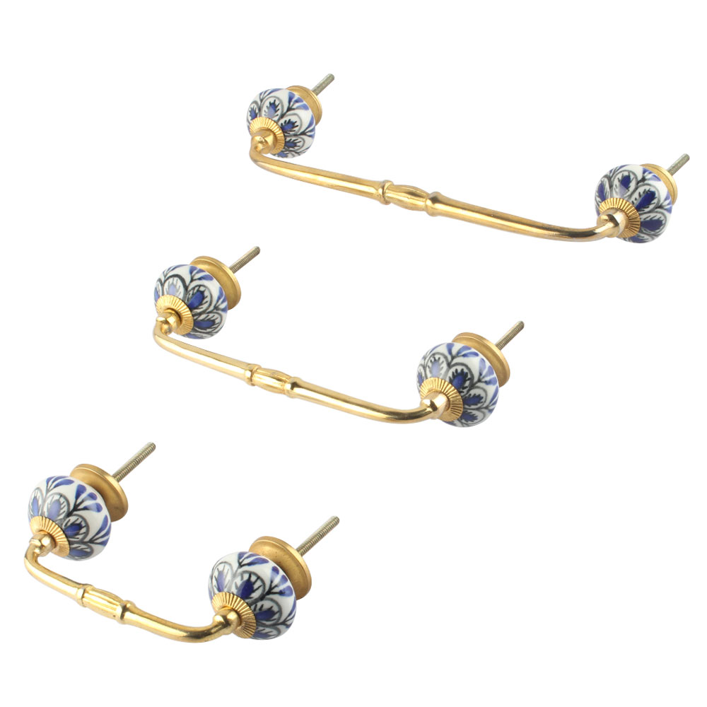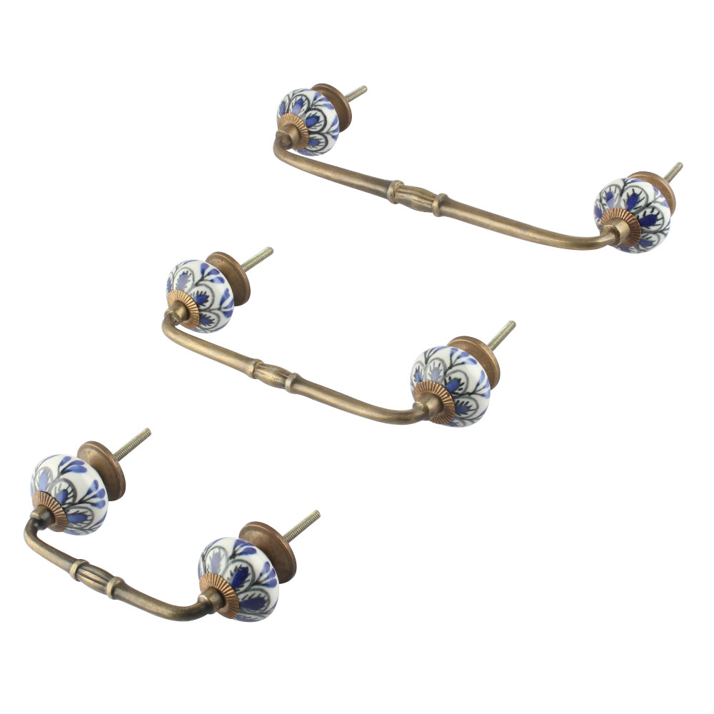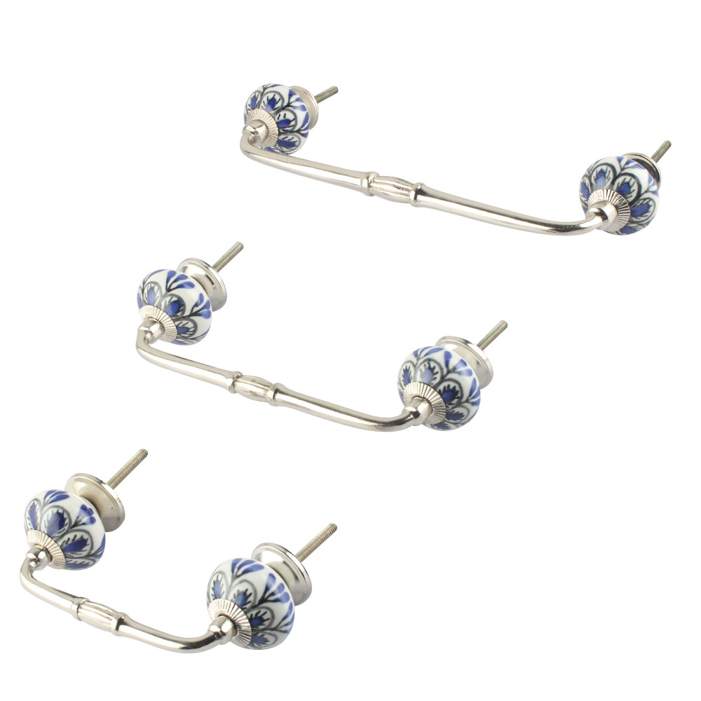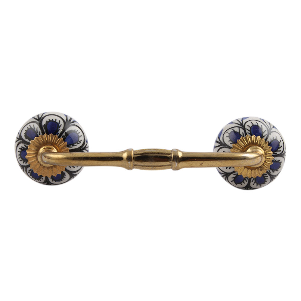 Black Blue Drop Ceramic Bridge Handle. Ideal for Drawer, Dresser, Cabinet, Wardrobe, Cupboard and Almirah.