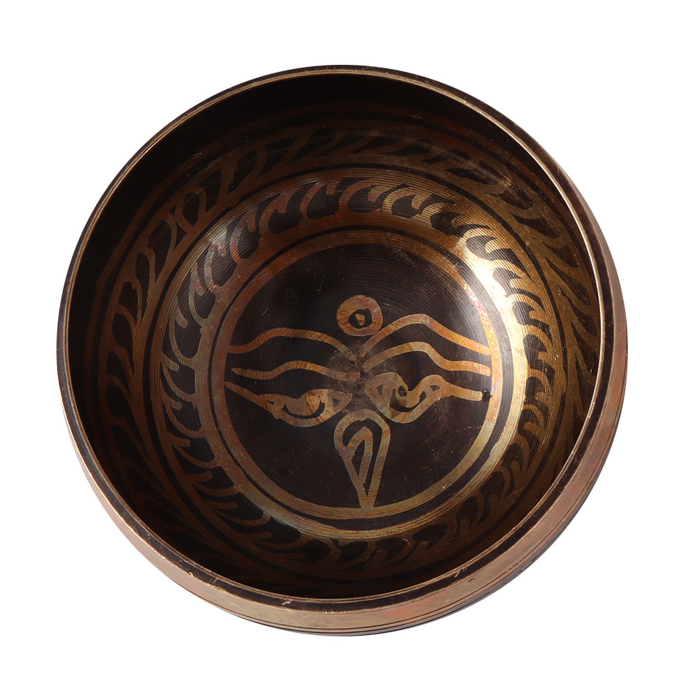 When tapped or played around the rim, the bowl emits a sound that is tranquillizing, harmonious, and pleasant. Ideal for yourself to unwind and meditate. An age-old technique for healing the mind, body, and soul is using singing bowls. They emit an OM sound, which deflects bad energy and draws in uplifting, healing energy. Gently strike the bowl's outside and interior borders with the mallet held in one hand, or play it around the rim to produce a variety of tones that are lovely, serene, comforting, and relaxing. The Singing Bowl is a musical instrument that requires some practice to play because no sound will be produced if your figures touch the bowl while the stick is being rotated. Please make sure the bowl is on a flat palm.