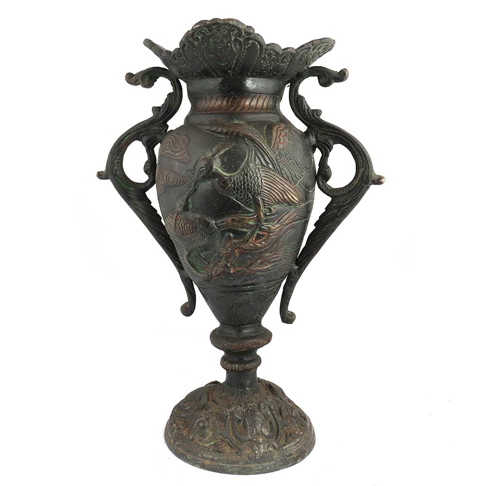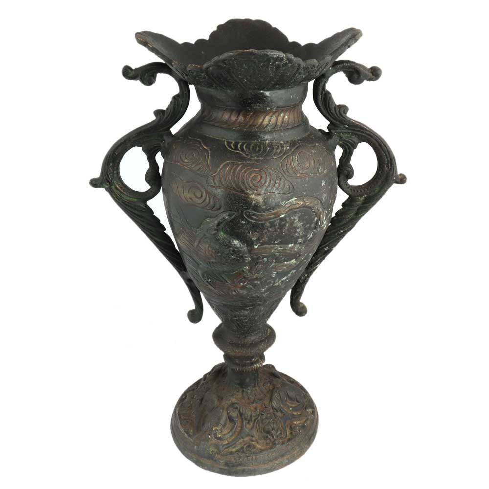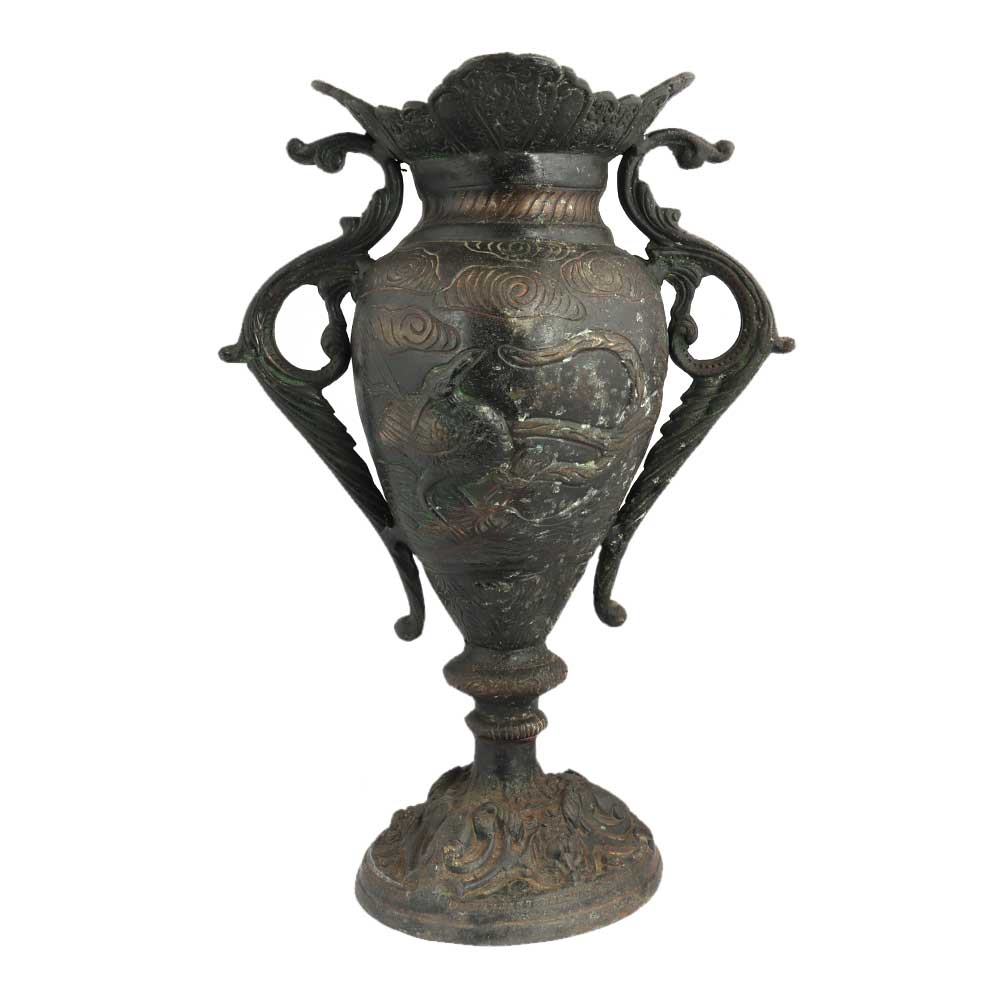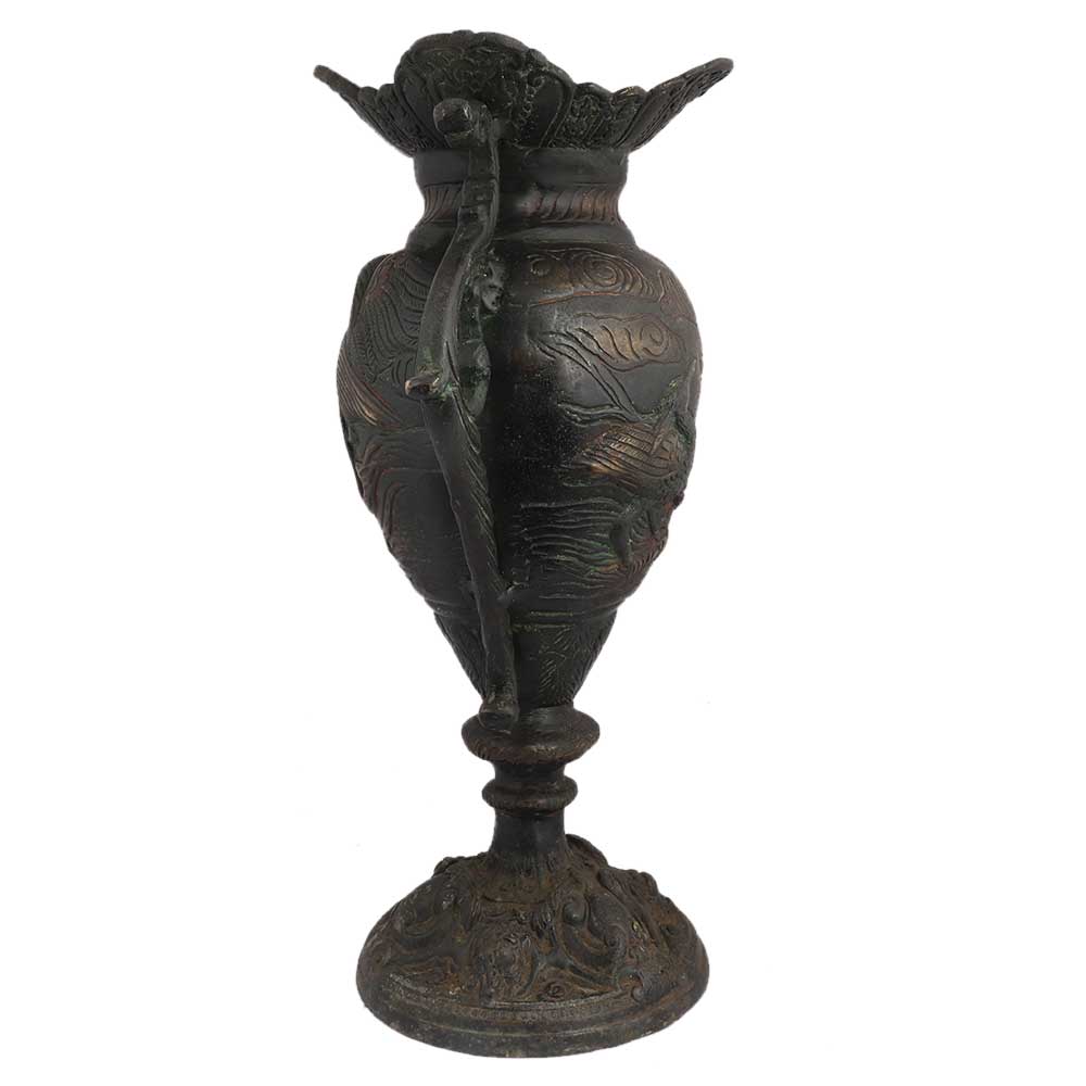 Handmade Brass Urn Flower Vase With Peacock Handles is Not a Vase but Its Shape is Modeled After One, Accented with Gorgeous birds on Each End of the Handles and a Angel on clouds engraved on it. It Features An Intricate peacock shaped swirl handles . A lovely collector's piece and gift for your friends and family.