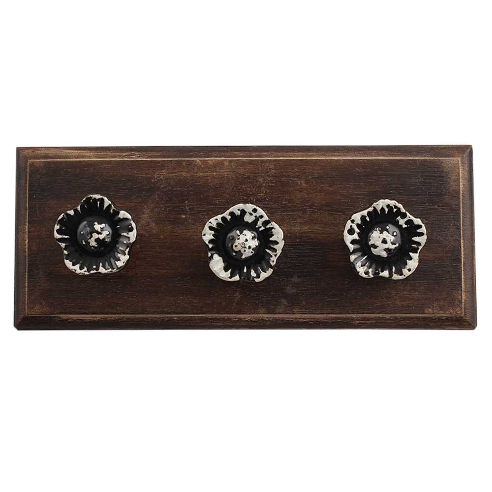 Black Daffodils Ceramic Etched Wooden Hooks. A Perfect Complement to the Soft Tone of the Wood are these White Traditional Hat Coat Hook Made of Genuine Porcelain and Brass. It can be use to Hang Jewellery, Leashes, Towels, Scarves, Light Weight Sweaters, Caps Etc.