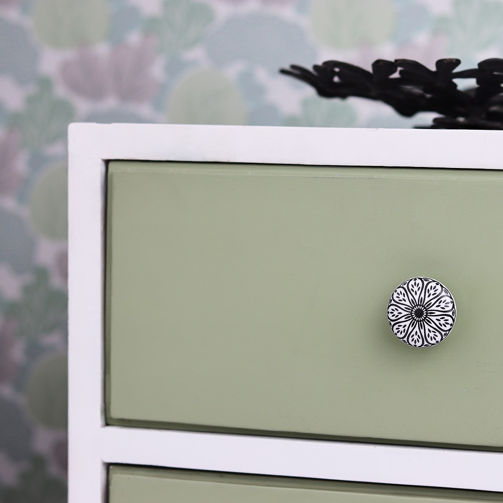 Made from high-quality ceramic, the Black Daisy Flat Knob is designed for durability. Its robust construction ensures it withstands daily use while preserving its beauty and functionality.