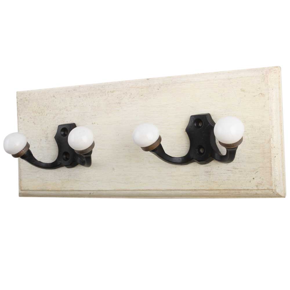 Black Double Loop Ceramic Iron Wooden Hook. A Perfect Complement to the Soft Tone of the Wood are these White Traditional Hat & Coat Hook Made of Genuine Porcelain and Brass. It can be use to Hang Jewellery, Leashes, Towels, Scarves, Light Weight Sweaters, Caps Etc.