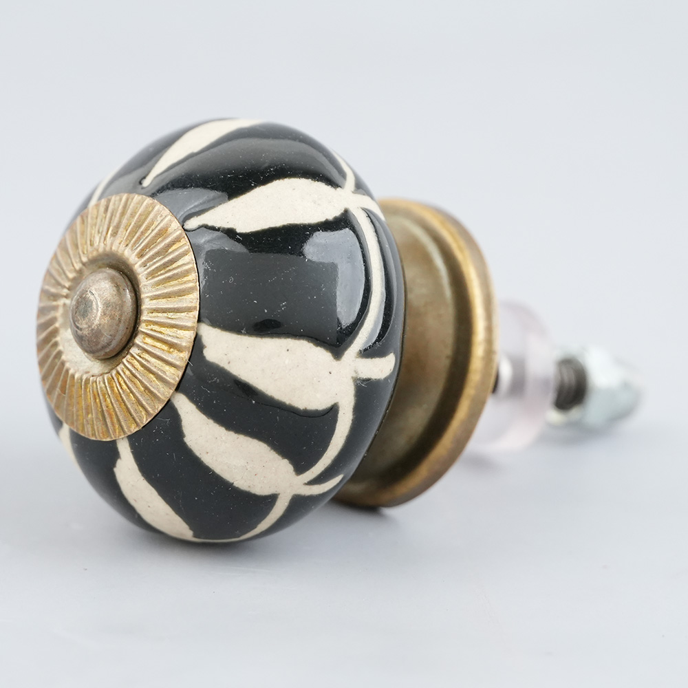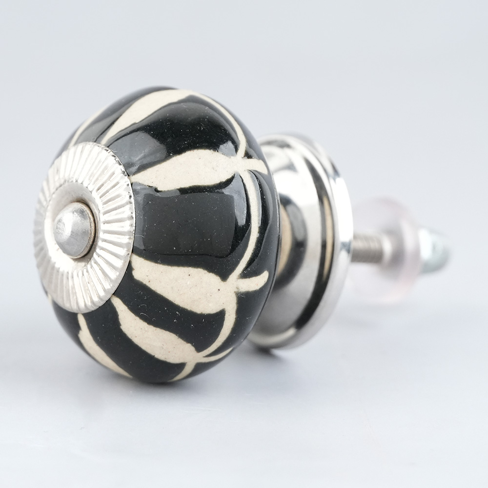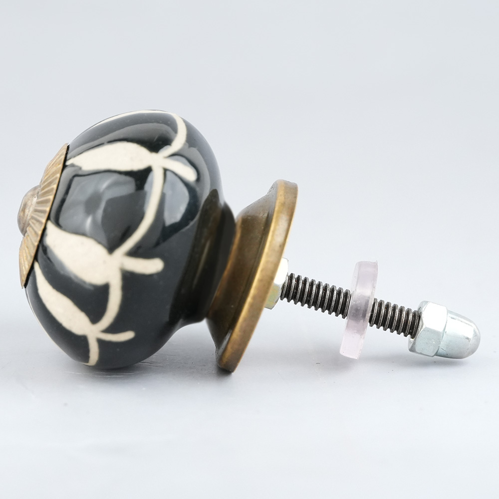 Black Floral Ceramic Cabinet Knob. Ideal for Drawer, Dresser, Cabinet, Wardrobe, Cupboard and Almirah.
