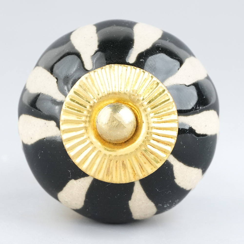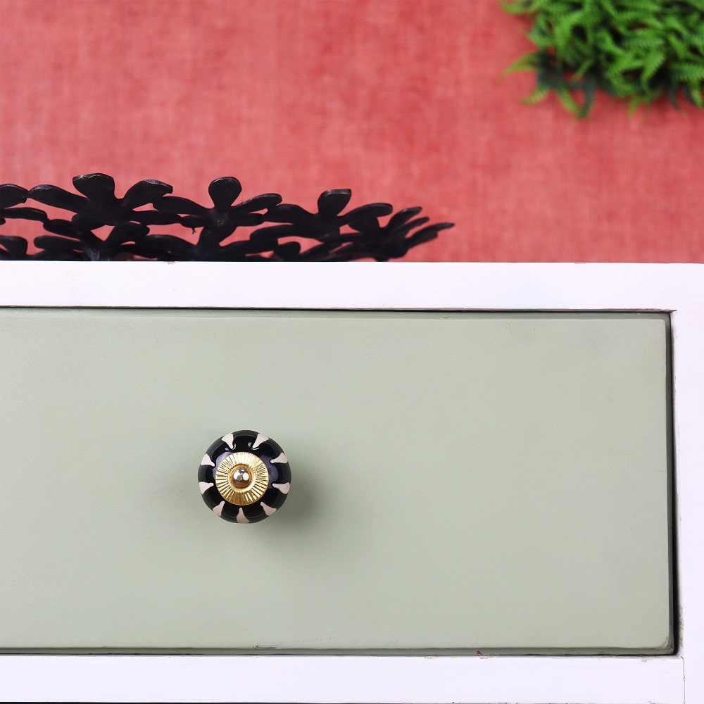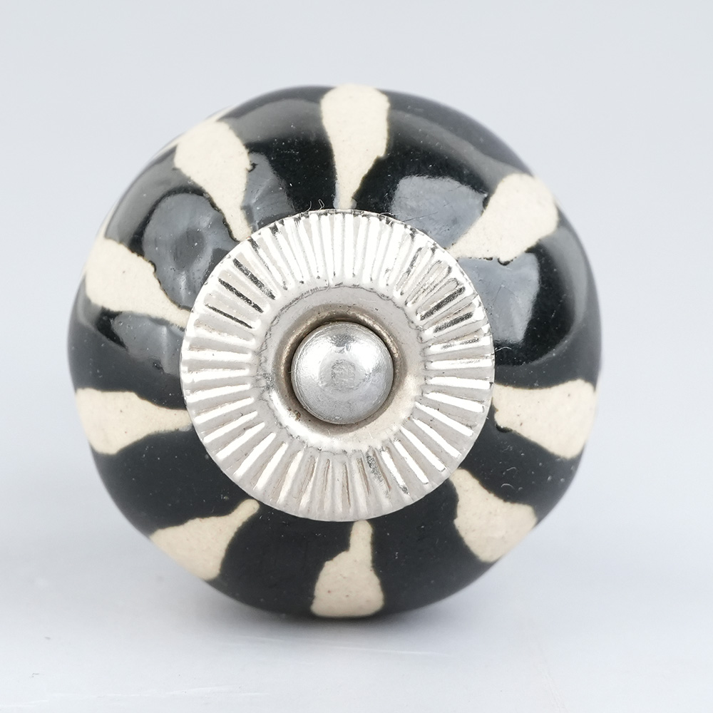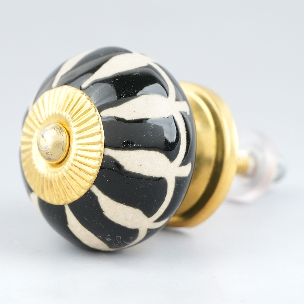 Black Floral Ceramic Cabinet Knob. Ideal for Drawer, Dresser, Cabinet, Wardrobe, Cupboard and Almirah.