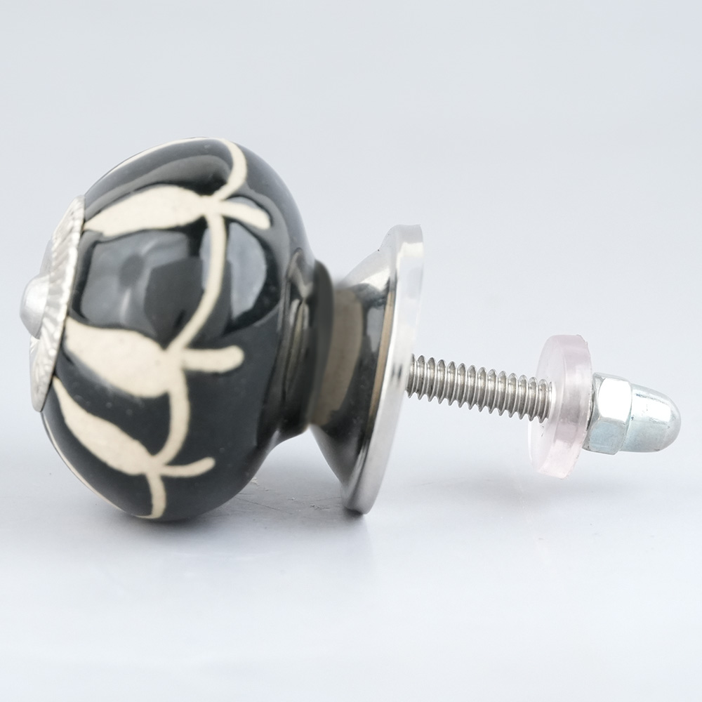 Crafted from high-quality ceramic, this knob is designed to last and retain its beauty. The black floral design is perfect for adding depth and character to your furniture, while the smooth ceramic finish ensures a durable and easy-to-maintain surface. Whether you're refreshing your wardrobe, updating your drawer pulls, or enhancing your kitchen cabinets, this knob brings an air of elegance and timeless beauty to your space.