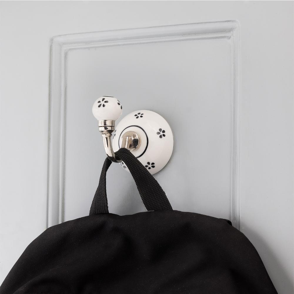 Black Floral Ceramic Hooks. When Put on Wall or Cabinet It is An Art in Itself. This Hook is Strong Enough to Hold Your Cloths, Keys, Tea Cups, Coffee Mugs, Hand Towels Etc.