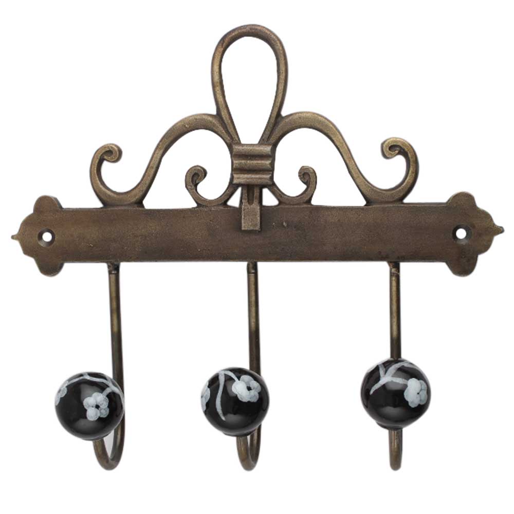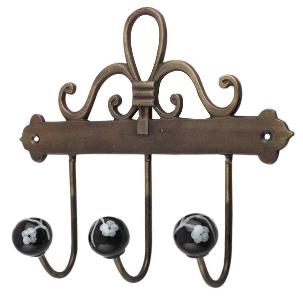 Black Floral Ceramic Iron Hook. A Perfect Complement to the Soft Tone of the Wood are these White Traditional Hat Coat Hook Made of Genuine Porcelain and Brass. It can be use to Hang Jewellery, Leashes, Towels, Scarves, Light Weight Sweaters, Caps Etc.