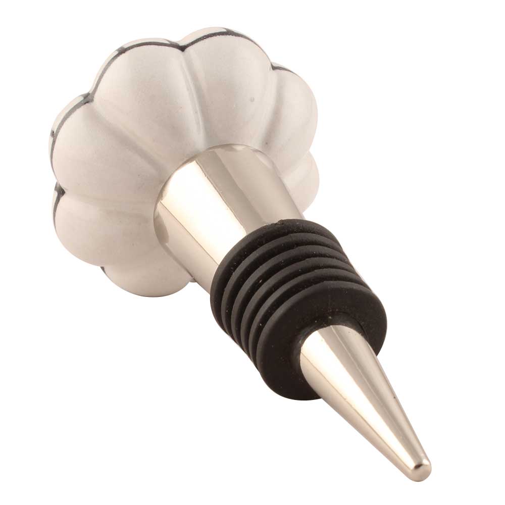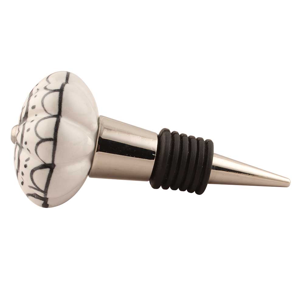 Black Flower Ceramic Wine Stopper. Zinc Alloy Wine Bottle Stopper with Attractive Jute Bag Packaging.